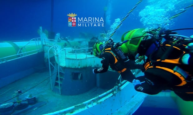 The ship's wreckage was pulled out of the water last week using a robot and towed to port at the naval base of Melilli in Sicily.