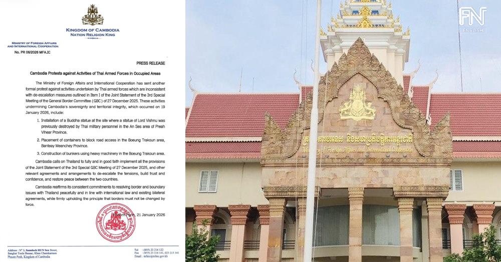 (Phnom Penh): Cambodian Ministry of Foreign Affairs and International Cooperation sent another formal protest against activities undertaken by Thai armed forces which are inconsistent with de-escalation measures outlined in Item I of the Joint Statement of the 3rd Special Meeting of the General Border Committee (GBC) of 27 December 2025, according to a press release seen by Fresh News on Wednesday (Jan. 21).