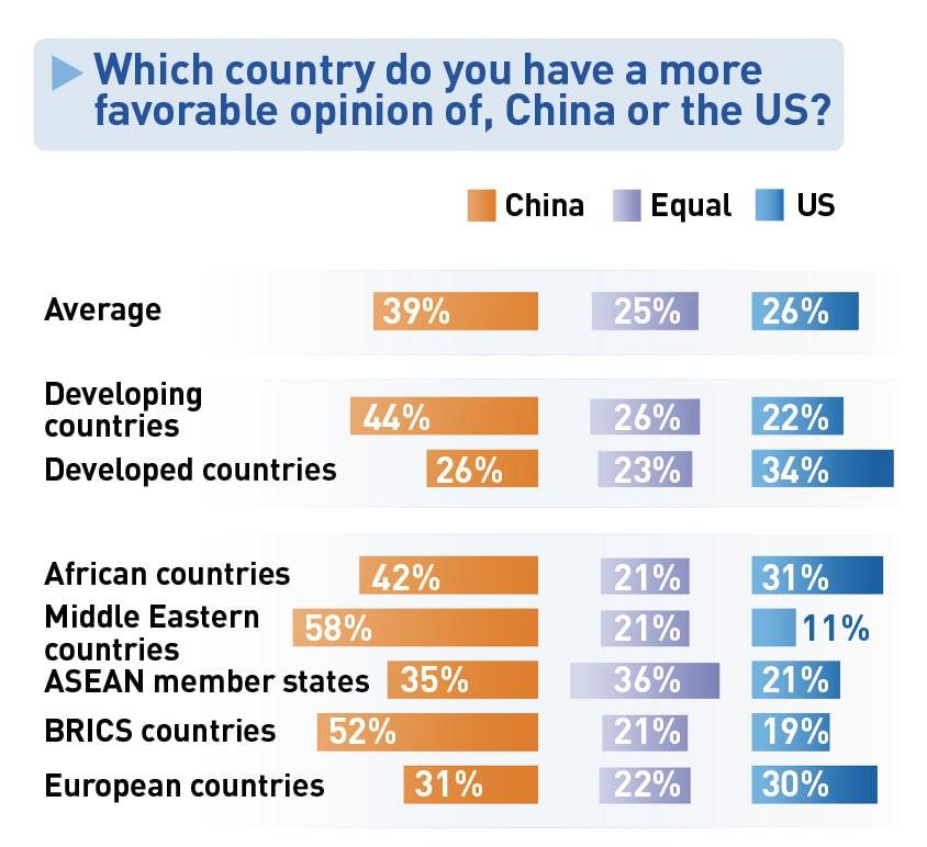 Global public looks forward to positive China-US ties; favorability toward China surpasses the US