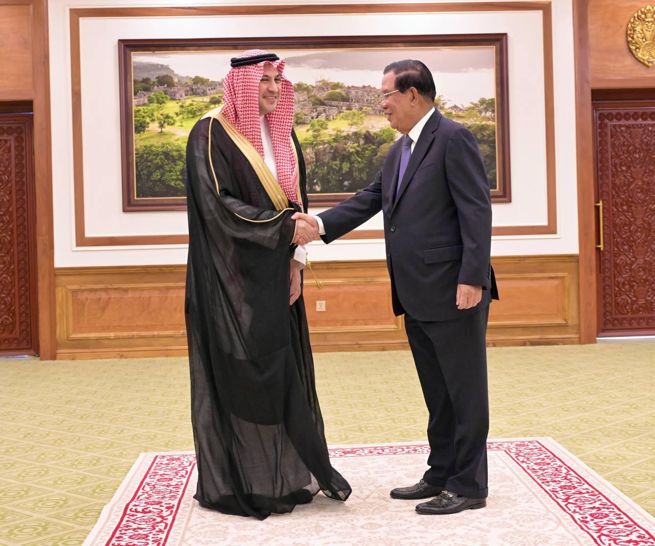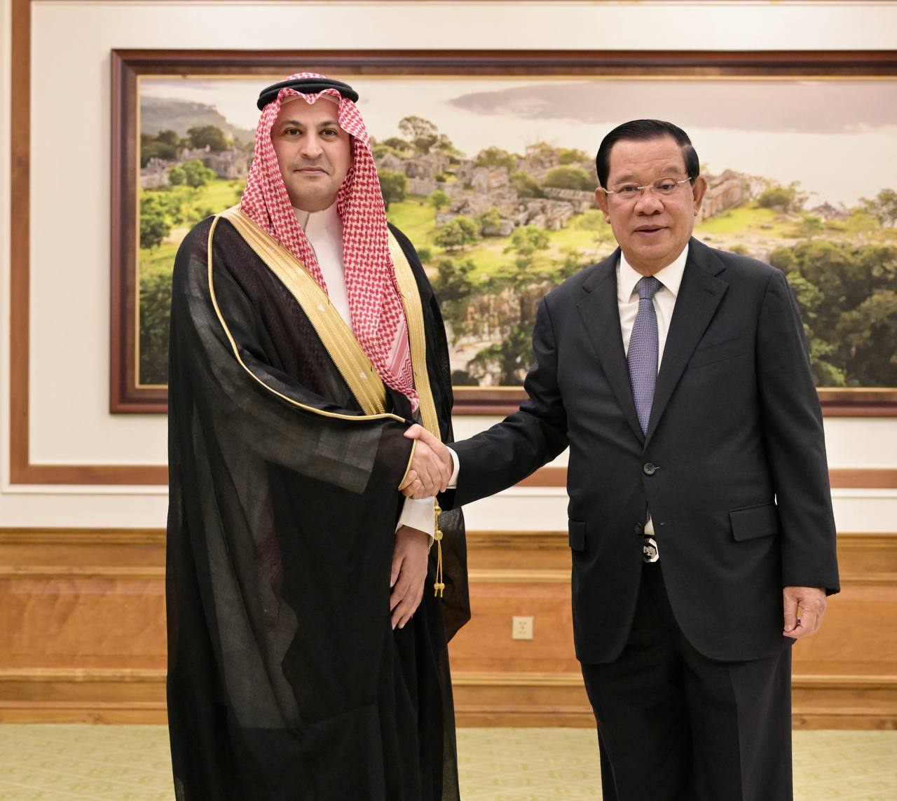 He further highlighted the strengthening bilateral relations between the two countries, particularly through the exchange of visits by leaders of both nations. He reaffirmed to Samdech Techo that in 2026, Saudi investors will travel to Cambodia to seek various investment opportunities through the Saudi Chambers of Commerce.