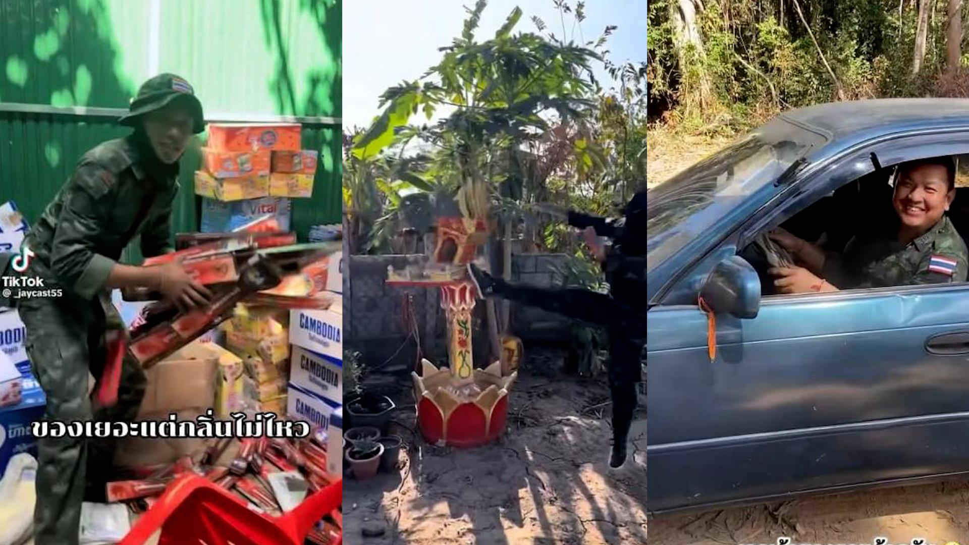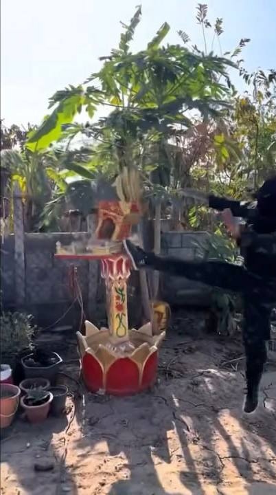 • In one clip, a soldier appears to kick a “guardian spirit shrine” (preah phum)—a sacred object in local belief—without any visible reason, raising questions about deliberate disrespect toward local culture and faith.