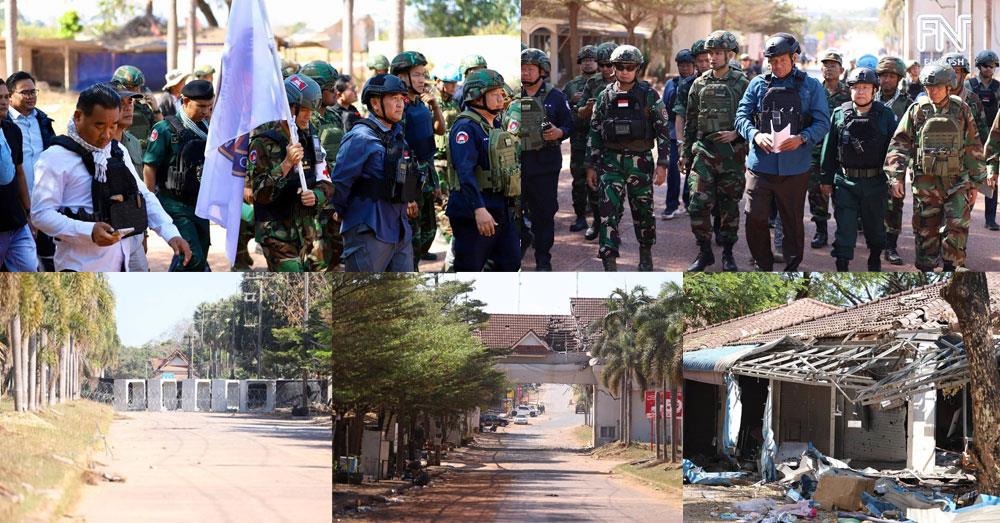According to the governor, the inspection was conducted together with the AOT team following serious violations by Thai military forces, including the use of heavy weapons fired into Cambodian territory and barbed-wire incursions. The attacks reportedly caused extensive damage to border infrastructure as well as civilian homes and property.