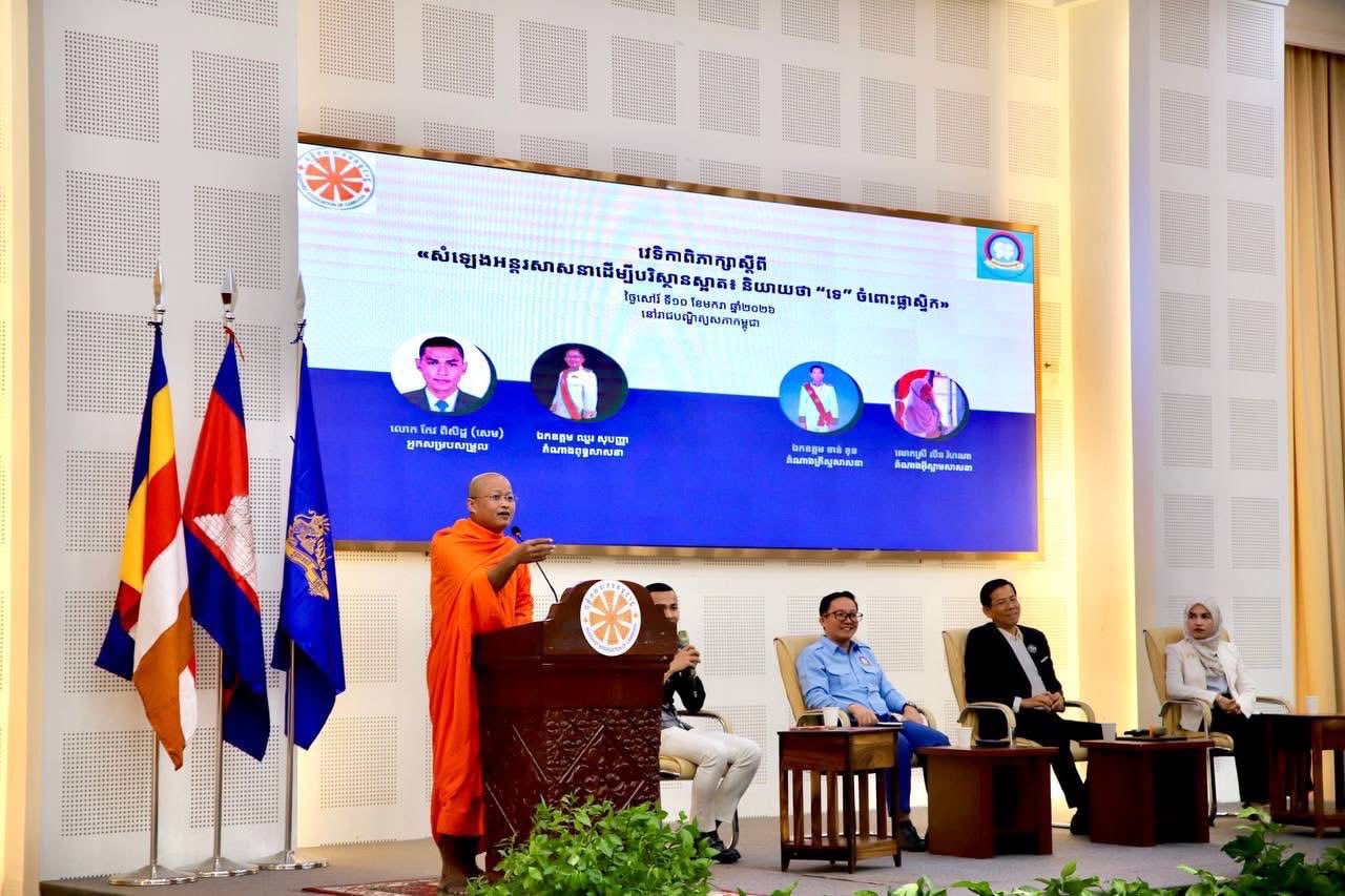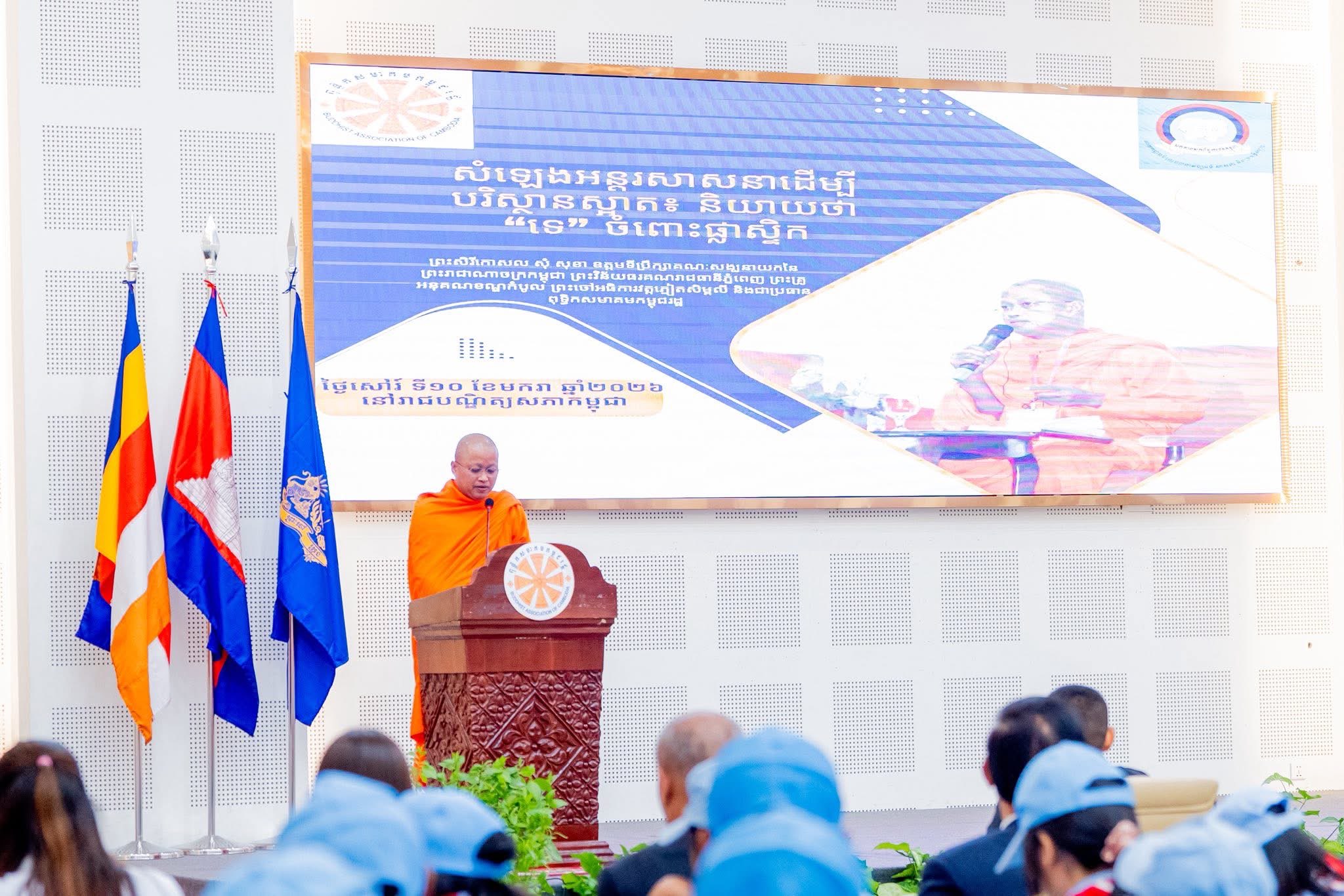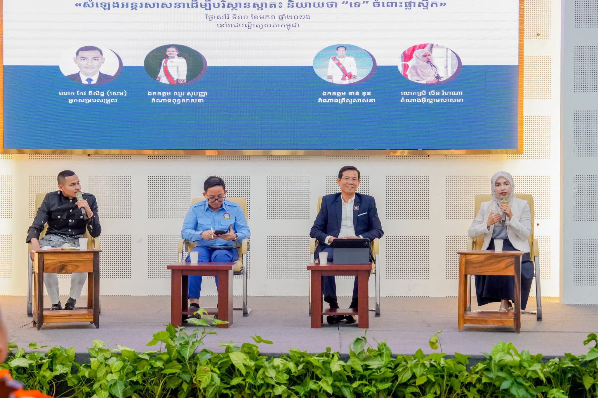The message was delivered at a discussion forum titled “Interfaith Voices for a Clean Environment: Say ‘No’ to Plastic,” organized by the Youth Committee of the Cambodian Buddhist Association, in collaboration with the Department of Promoting Cultural, Religious, and Historical Movements of the Union of Cambodian Youth Federations. The event was held on Saturday morning, 10 January 2026, at the Royal Academy of Cambodia and was live-streamed on social media.