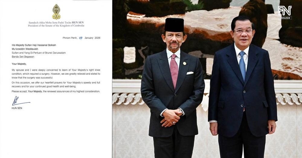 (Phnom Penh): On Monday (Jan. 19), Samdech Techo Hun Sen, President of the Senate of the Kingdom of Cambodia, sent a letter of well-wishes to His Majesty Sultan Haji Hassanal Bolkiah Mu'izzaddin Waddaulah, King and Head of State of Brunei Darussalam, offering prayers for His Majesty’s speedy recovery and wishing Him continued good health and well-being.