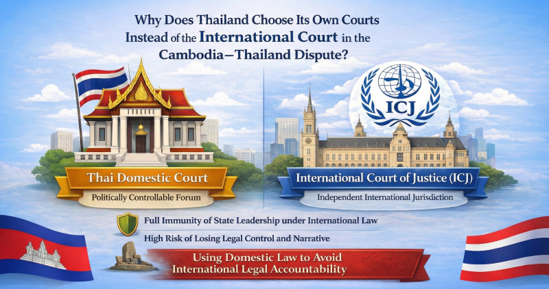 Thailand’s decision to pursue a case in its domestic courts is neither accidental nor purely legal in nature. Rather, it is a strategic choice that allows Thailand to control the forum, the narrative, and the political meaning of the case.