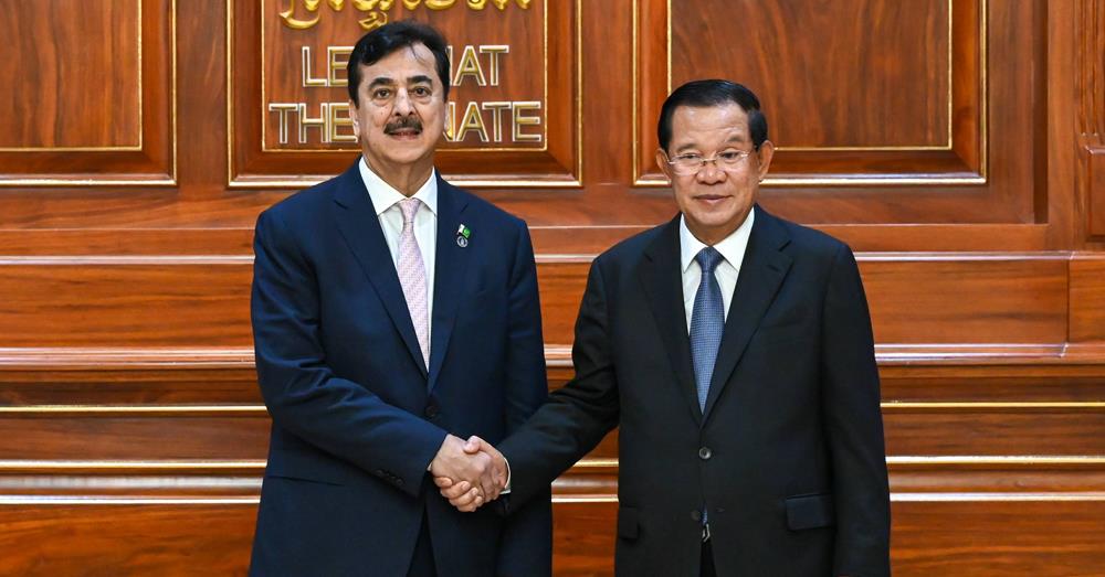(Phnom Penh): Cambodian Senate President Hun Sen expressed his desire and support for the Royal Government of Cambodia to establish an official embassy in Pakistan, speaking in a bilateral meeting with Pakistani Senate President Syed Yousaf Raza Gilani on Monday (Feb. 2) at the Solidarity Palace.