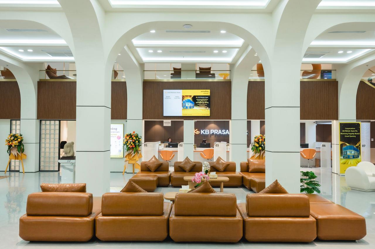 Located at the heart of Phnom Penh Capital, KB PRASAC Monivong Flagship Branch is a strategic location, ready to accommodate customers’ needs. KB PRASAC Monivong Flagship Branch offers next-level banking experience. Customers can enjoy the modern and luxurious banking hall, and spacious customer lounge, designed to serve customers better, blending digital convenience with personalized, in-branch engagement to deliver a wide range of state-of-the-art financial solutions.