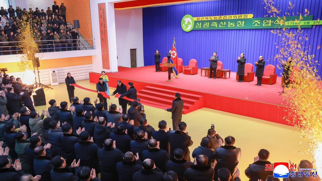 An inauguration ceremony of the Samgwang Livestock Farm under the North Phyongan Provincial Rural Economy Committee, built as a model of socialist rural construction in the new era and development of livestock farming, was held with splendour on February 2.
