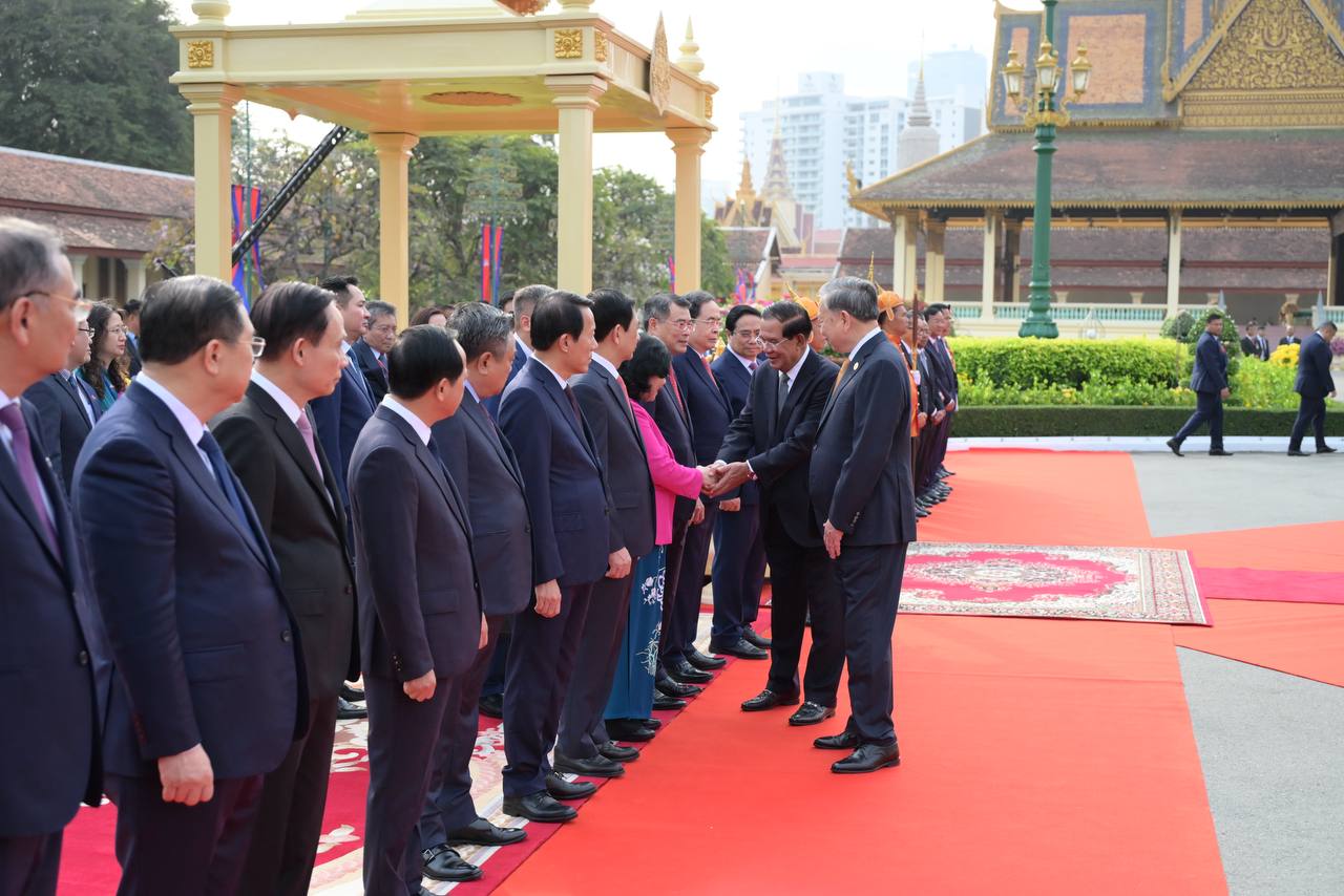 (Phnom Penh): Samdech Techo Hun Sen, in his capacity as Acting Head of State, on Friday morning (Feb. 6) officially received Tô Lâm, General Secretary of the Communist Party of Viet Nam, at the Royal Palace as the highest royal representative of His Majesty King Norodom Sihamoni.