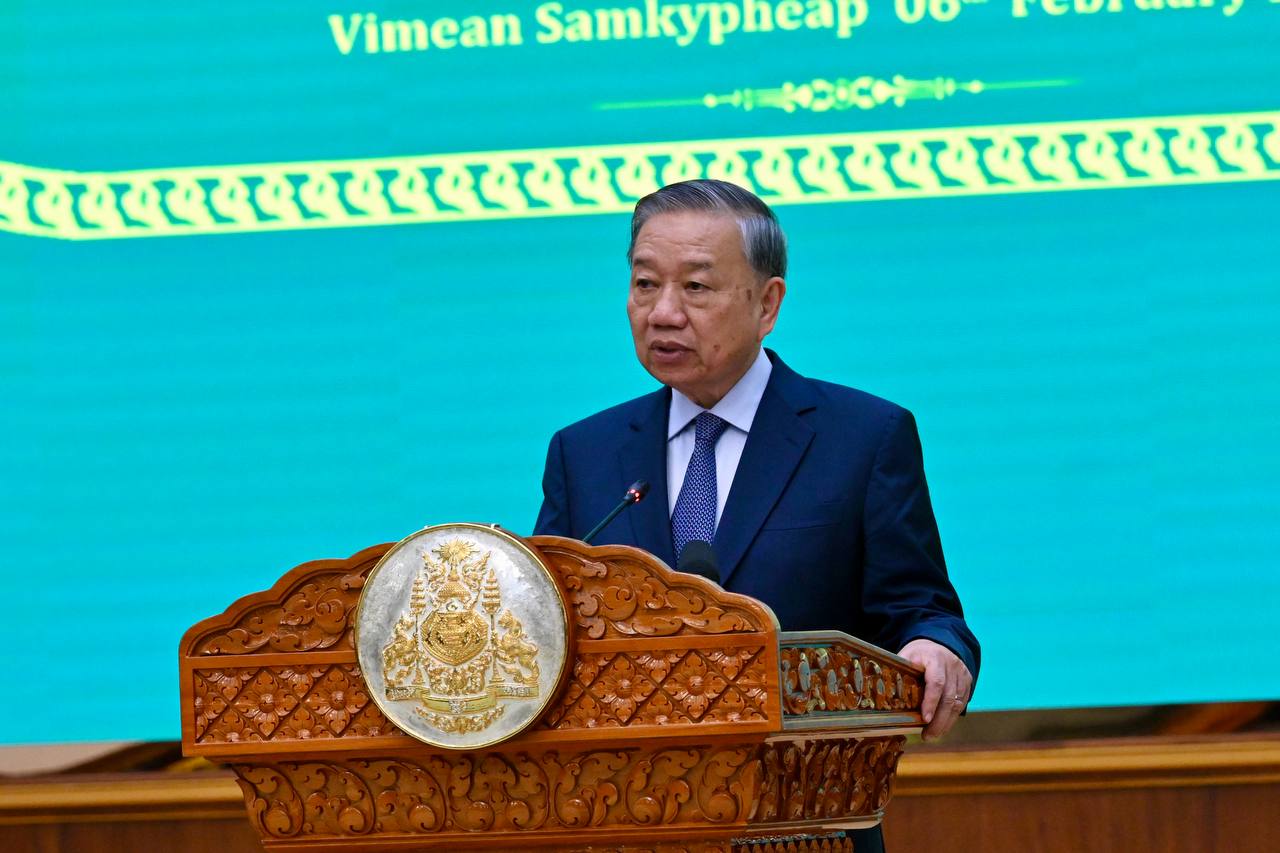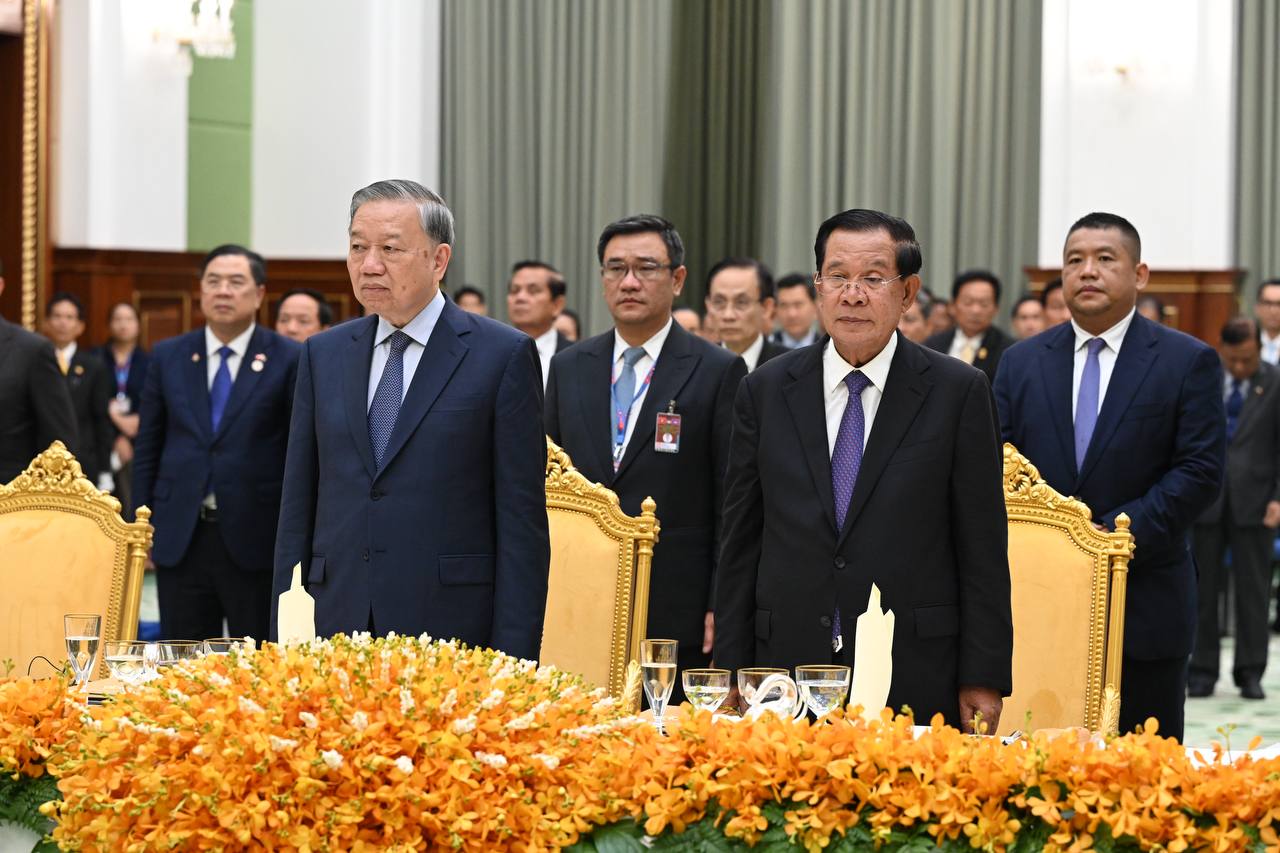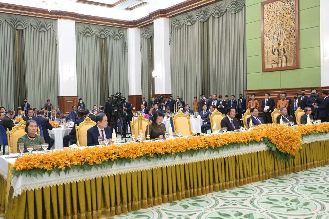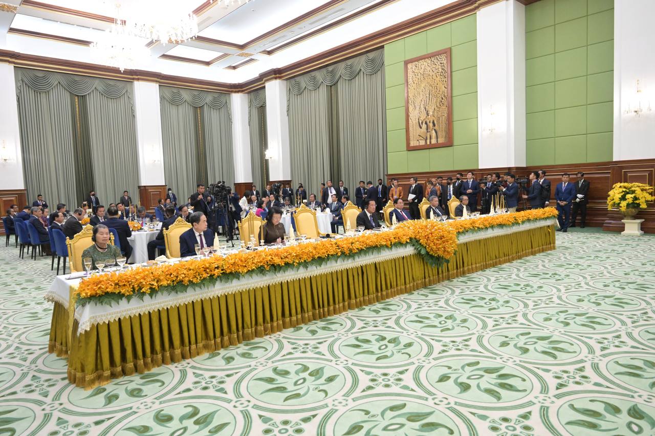 (Phnom Penh): Samdech Techo Hun Sen, President of the Senate of Cambodia, on behalf of Cambodian King Norodom Sihamoni, hosted a state banquet in honor of To Lam, General Secretary of the Communist Party of Viet Nam, and his delegation on Friday evening (Feb. 6) at the Senate’s Solidarity Palace.