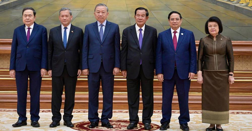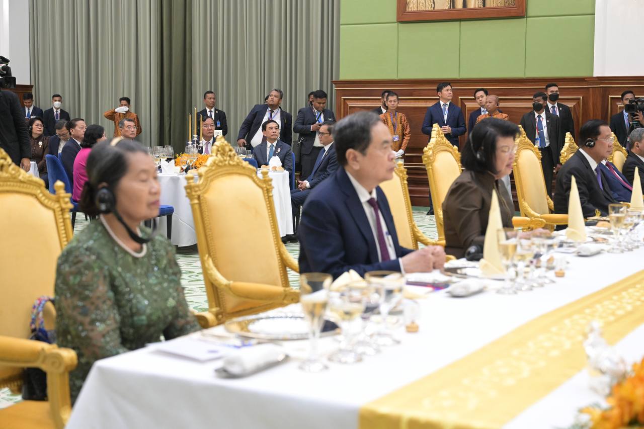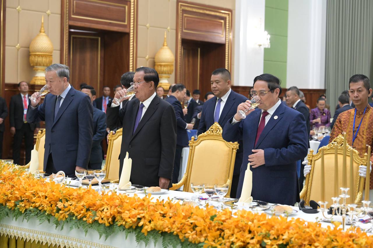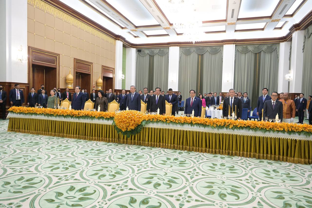 (Phnom Penh): Samdech Techo Hun Sen, President of the Senate of Cambodia, on behalf of Cambodian King Norodom Sihamoni, hosted a state banquet in honor of To Lam, General Secretary of the Communist Party of Viet Nam, and his delegation on Friday evening (Feb. 6) at the Senate’s Solidarity Palace.