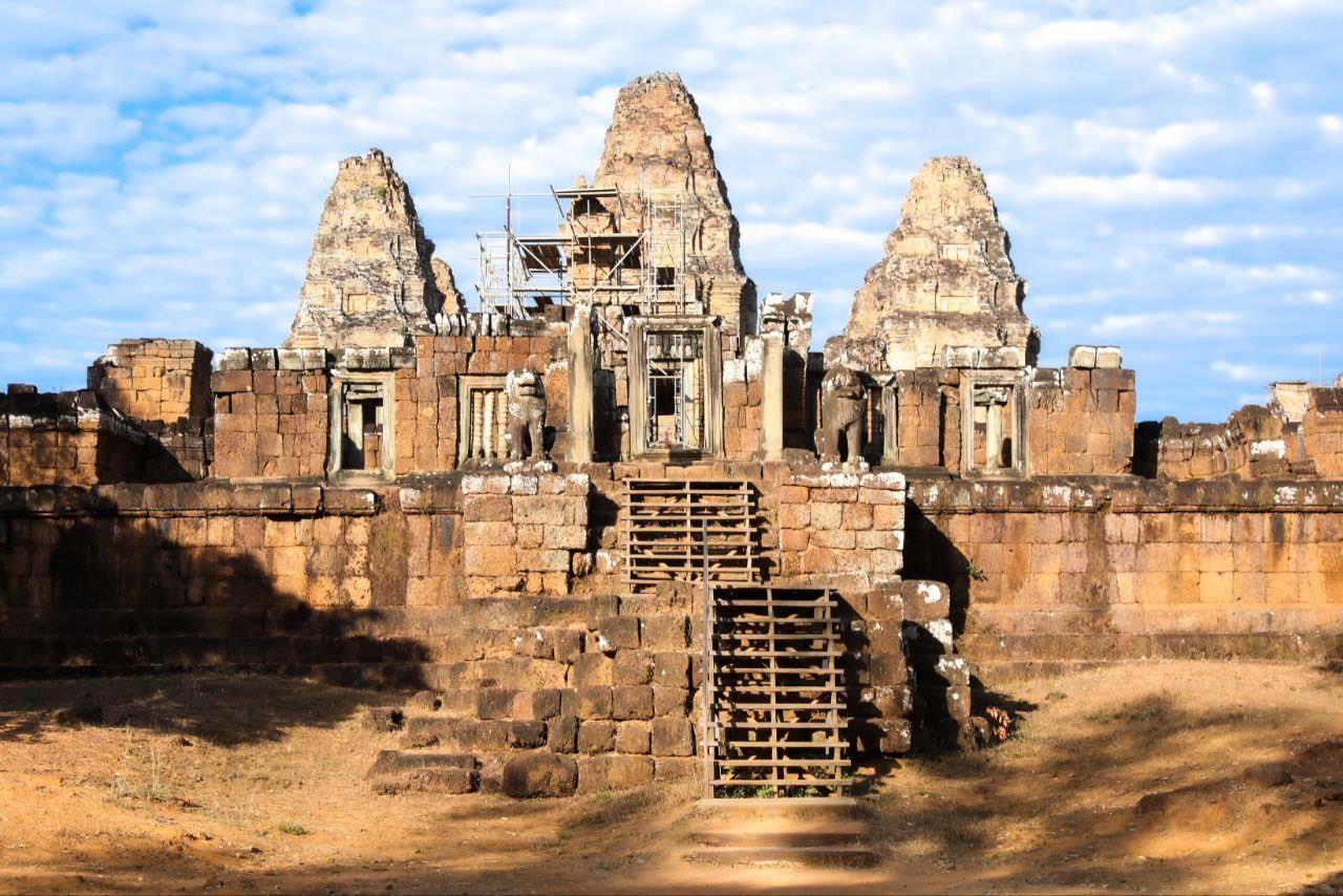East Mebon Temple is a 10th-century mountain temple built during the reign of King Rajendravarman II, located at the center of the ancient Yashodharatataka (East Baray), and is older than Pre Rup Temple.
