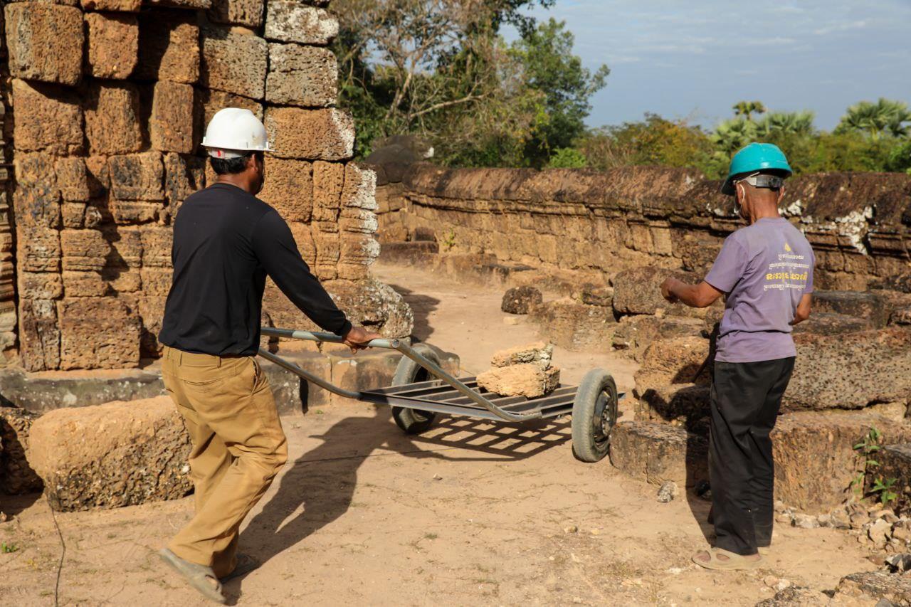 (Phnom Penh): The APSARA National Authority is restoring the north gate of the East Mebon Temple, which has been seriously damaged by natural and structural factors. The restoration work, carried out by the Department of Conservation of Monuments and Preventive Archaeology, began in late 2025 and is expected to be completed by April 2026.