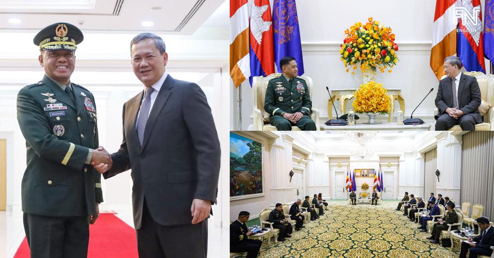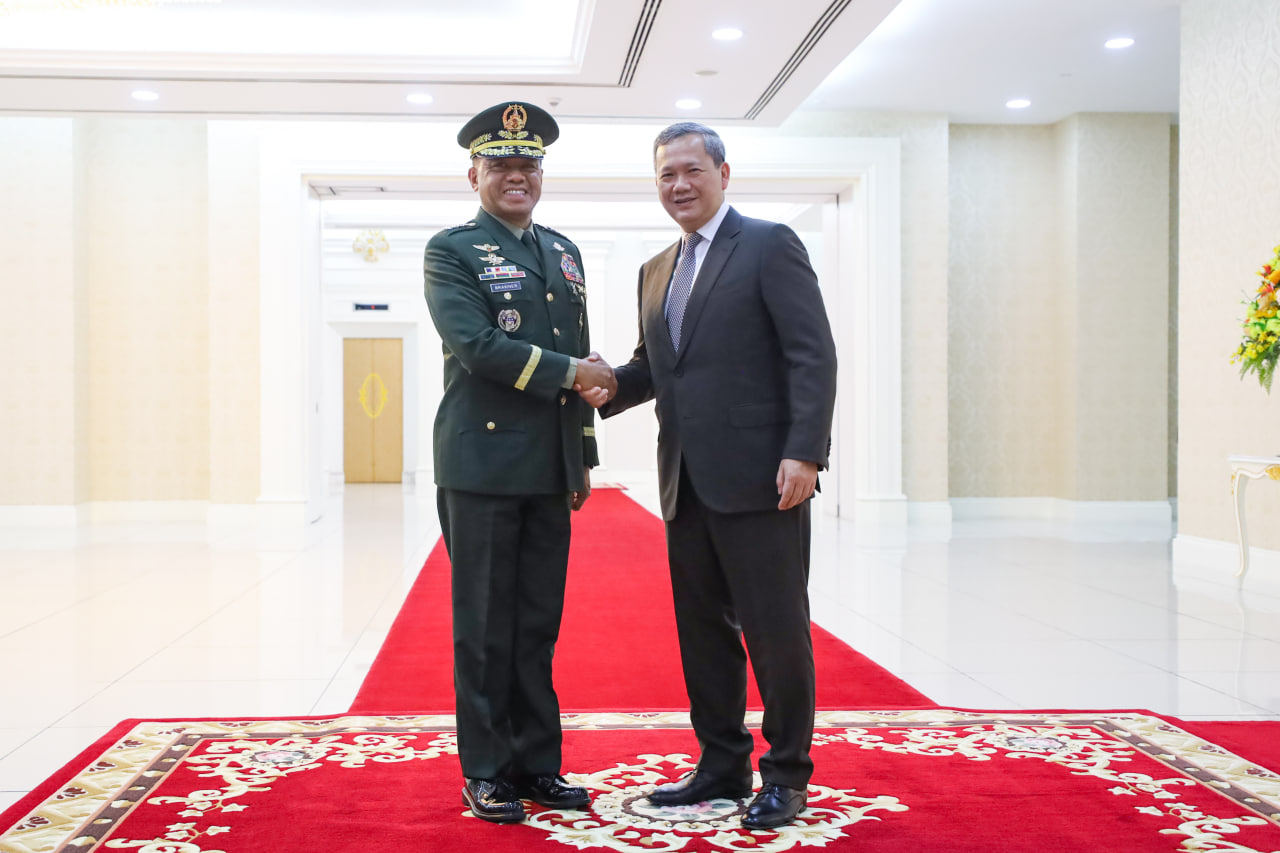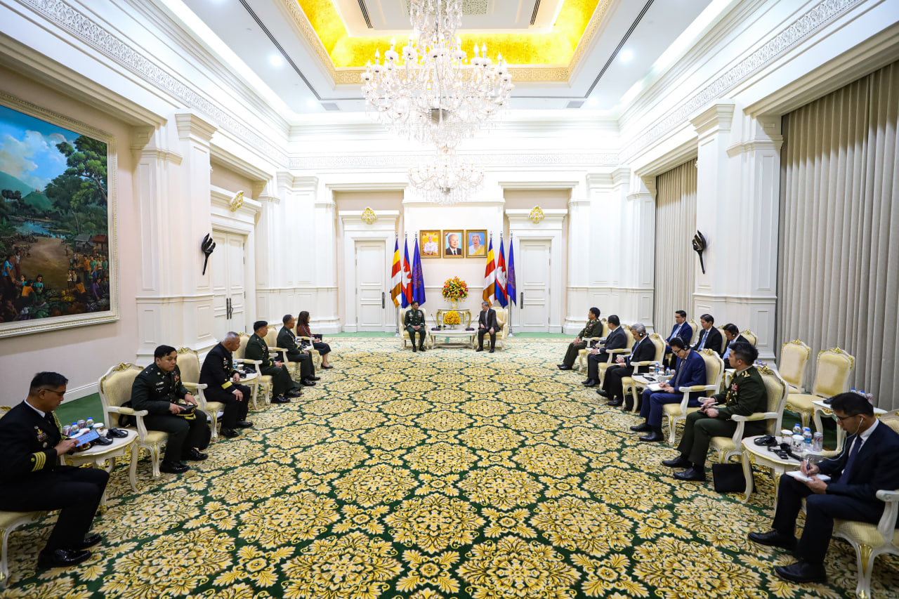Samdech Thipadei Hun Manet welcomed the Philippine delegation and expressed satisfaction with the progress in bilateral defence cooperation, notably in experience-sharing and capacity-building among the armed forces. He also conveyed hope for broader cooperation across the army, navy, and air force.