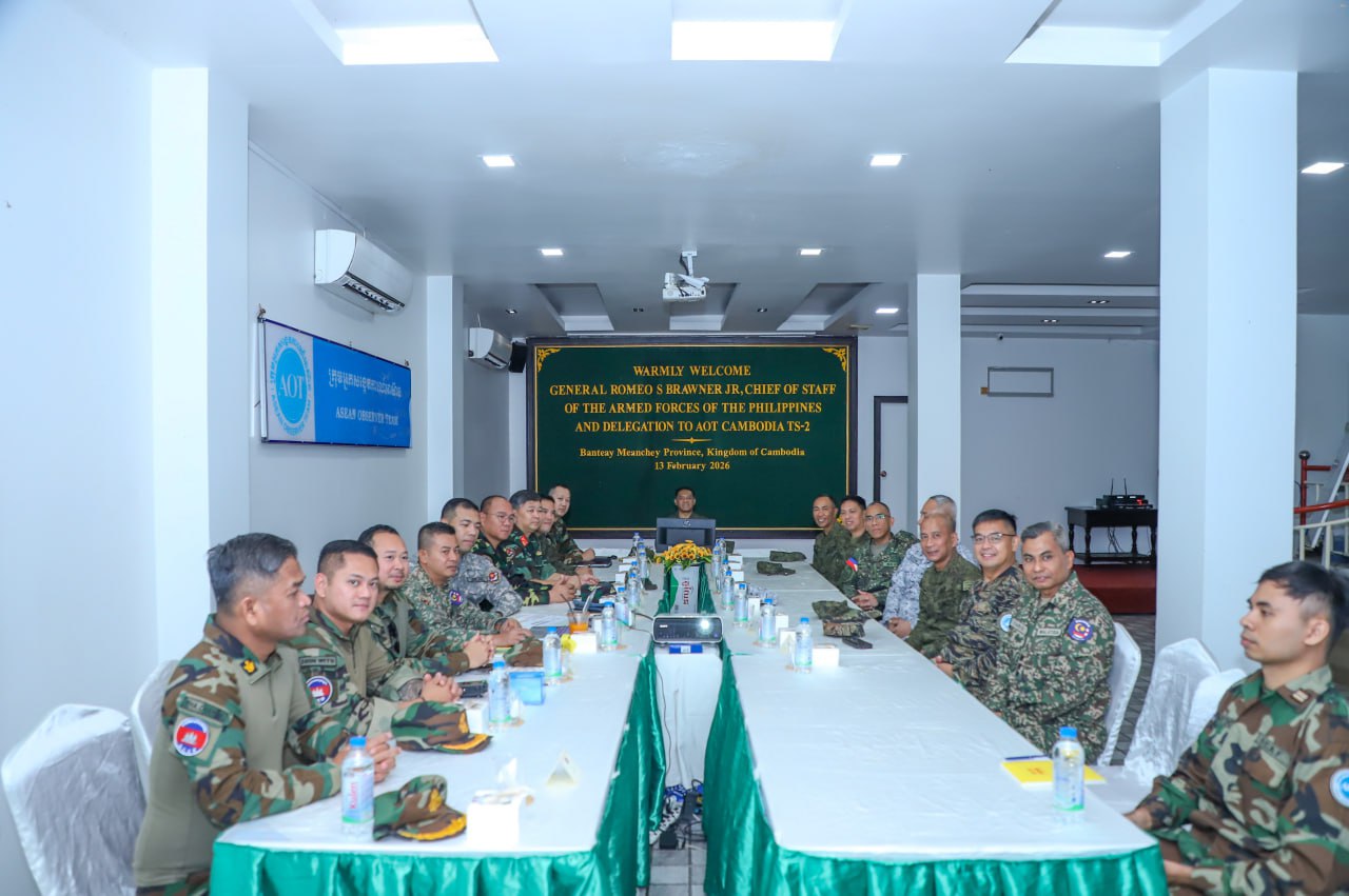 (Banteay Meanchey): Lieutenant General Maly Socheata, Spokeswoman of the Ministry of National Defence of Cambodia, reported that at 10 a.m. on Friday (Feb. 13), the Cambodian Liaison Group (CLG) facilitated the ASEAN Observer Team (AOT) to welcome General Romeo S Brawner Jr., Chief of Staff of the Armed Forces of the Philippines, during his visit to several locations in Serey Sophon, Banteay Meanchey province, following the implementation of the ceasefire.