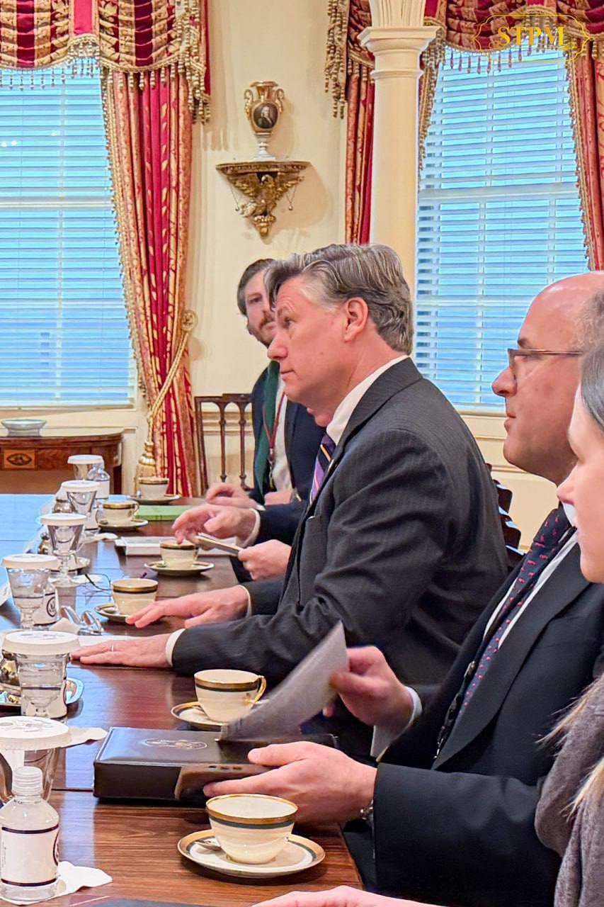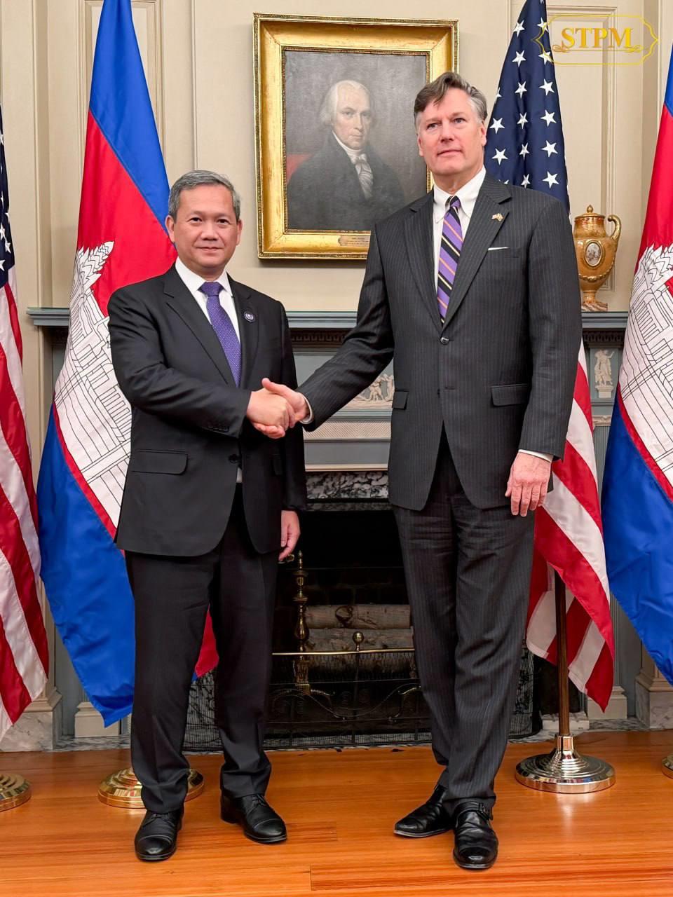 (Washington): Samdech Thipadei Hun Manet, Cambodian Prime Minister, had a discussion with Christopher Landau, US Deputy Secretary of State, on the afternoon of 19 February during his visit to Washington, D.C., to attend the inaugural meeting of the Board of Peace.