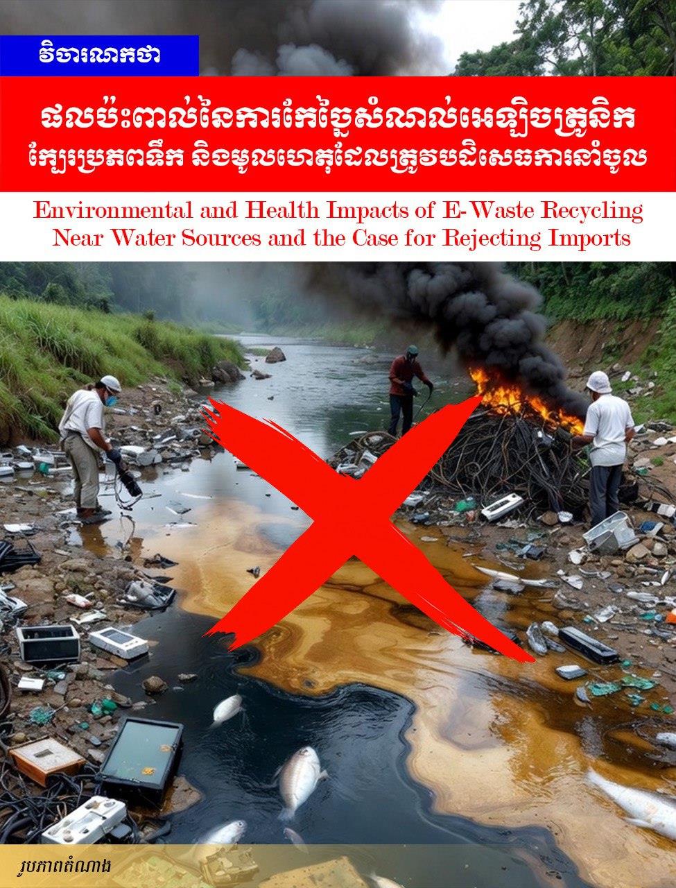 (Phnom Penh): The recycling of electronic waste (E-waste) is essential for resource recovery and reducing landfill volume. However, when these activities are unregulated or conducted near water bodies such as rivers, lakes, groundwater wells, or coastal areas, they pose severe threats to the environment and public health. Proximity to water sources significantly increases the risk of toxins leaching into the water supply used for daily consumption.