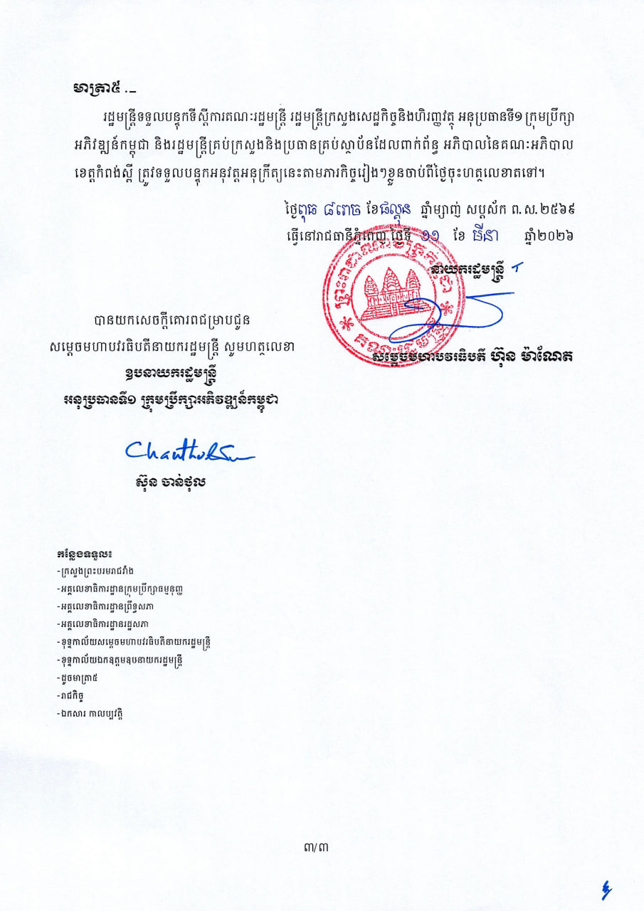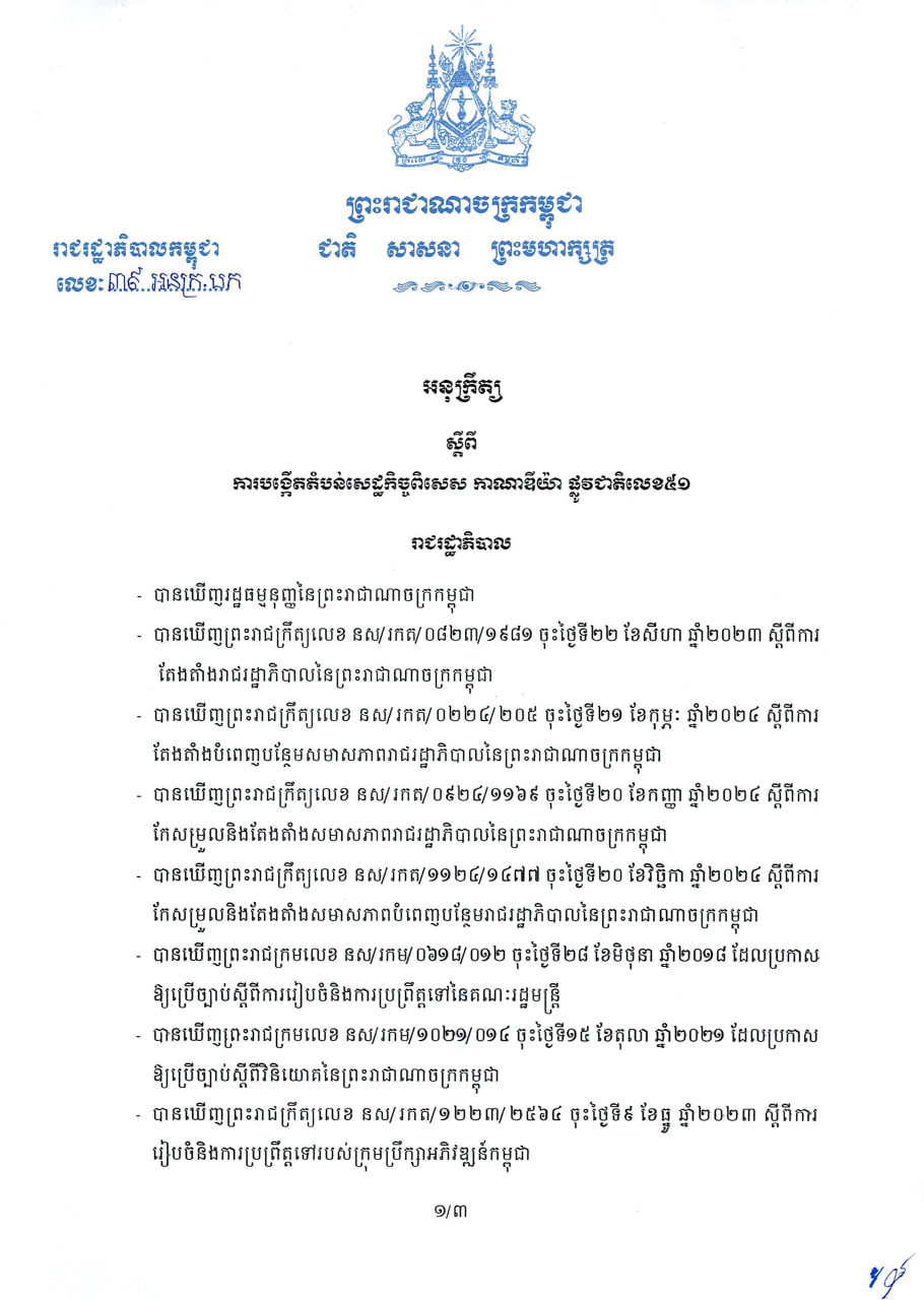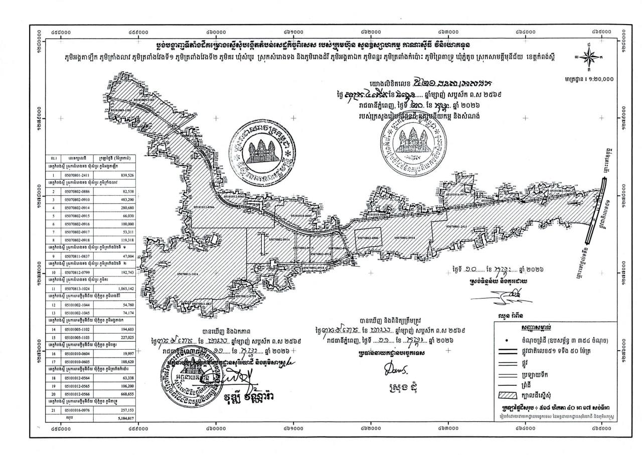 (Phnom Penh): The Royal Government of Cambodia has approved the establishment of a new special economic zone (SEZ) along National Road 51, covering more than 500 hectares across Samraong Tong and Samakki Meanchey districts in Kampong Speu Province. The new development will be known as the Canadia Special Economic Zone on National Road 51.