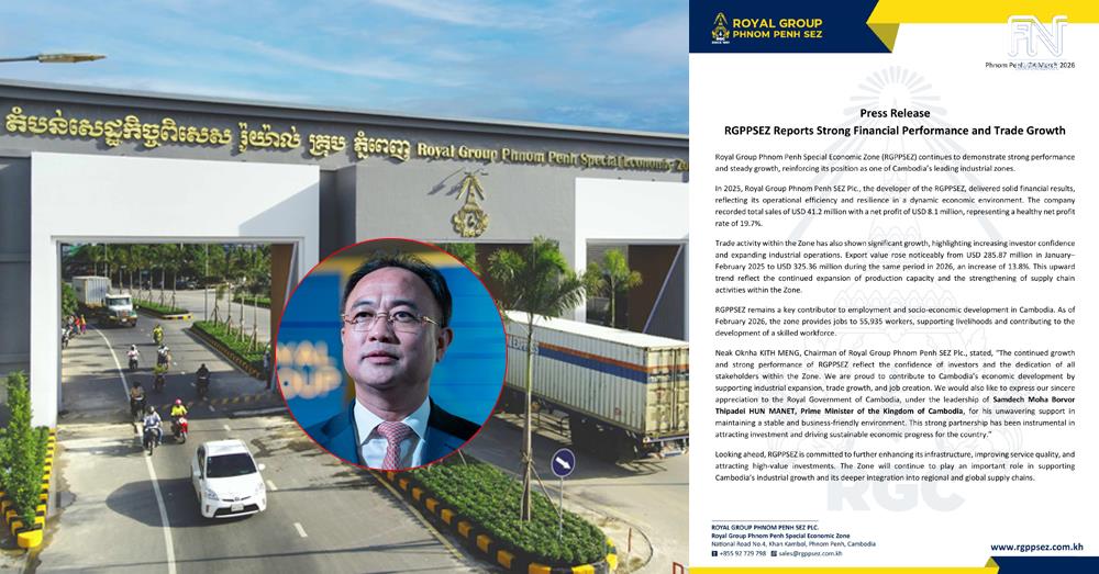 (Phnom Penh): Royal Group Phnom Penh Special Economic Zone (RGPPSEZ) continues to demonstrate strong performance and steady growth, reinforcing its position as one of Cambodia's leading industrial zones, according to a press release seen by Fresh News on Tuesday (Mar. 24).