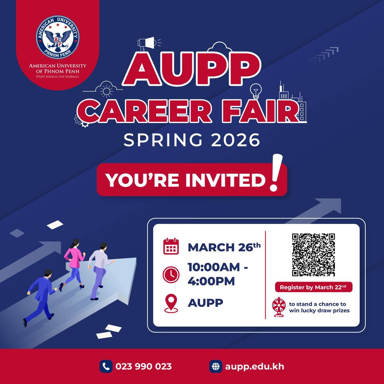 (Phnom Penh): The American University of Phnom Penh (AUPP) will host its highly anticipated Career Fair 2026 on 26 March, bringing together students, graduates, and leading professionals for a full day of networking, learning, and career opportunities.