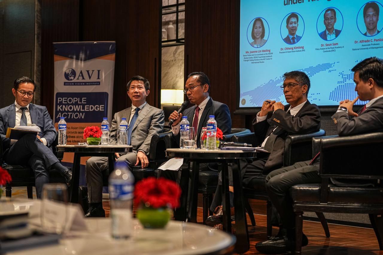 The book launch event was followed by a panel session, featuring Joanne Lin Weiling, Chheng Kimlong, Seun Sam, Alfredo C. Panizales, and Lim Menghour, and moderated by Path Kosal, Strategic Advisor to AVI and Secretary of State at the Office of the Council of Ministers. The session explored key themes of the publication, including the evolving role of middle powers, the transformation of development cooperation, and the growing importance of co-creation and network-based partnerships in navigating global uncertainties.