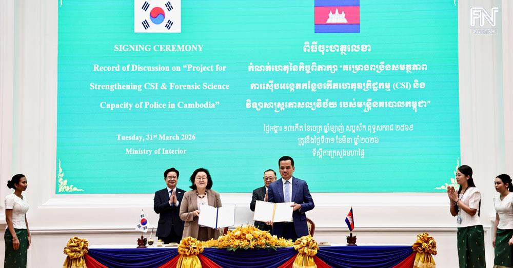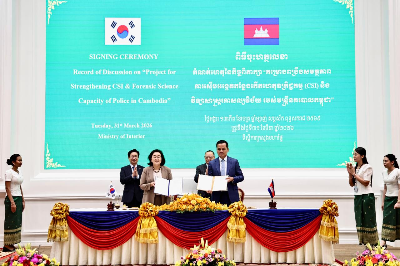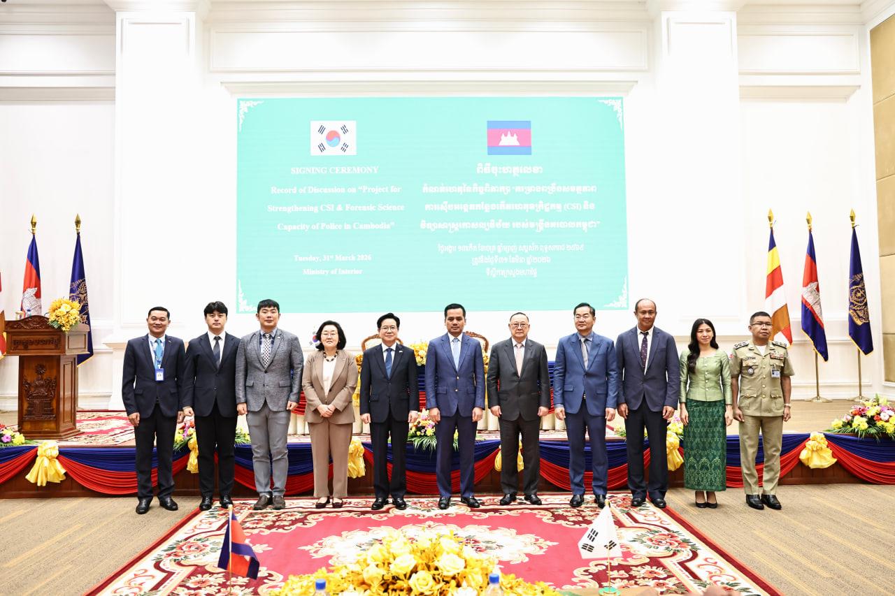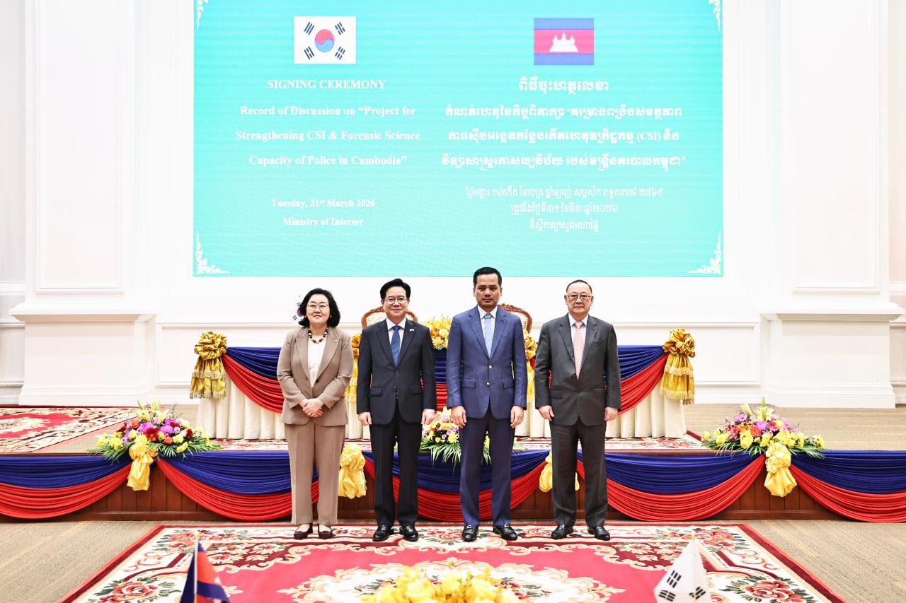 (Phnom Penh): The Korea International Cooperation Agency (KOICA) and the Ministry of Interior (MoI) of the Royal Government of Cambodia, on Tuesday (Mar. 31), officially signed the Record of Discussion (RD) for the “Project for Strengthening CSI & Forensic Science Capacity of Police in Cambodia.”