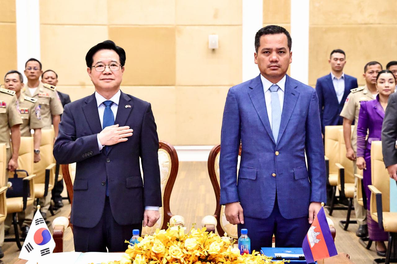 Funded by the Korean government through KOICA with a total budget of USD 13.5 million, the initiative aims to modernize Cambodia’s law enforcement by strengthening advanced investigative skills and digital forensic capabilities. The RD was signed by Choi Moon Jung, Country Director of the KOICA Cambodia Office, and Sar Sokha, Deputy Prime Minister and Minister of the Ministry of Interior. The signing was witnessed by Kim Chang-yong, Ambassador of the Republic of Korea to the Kingdom of Cambodia.