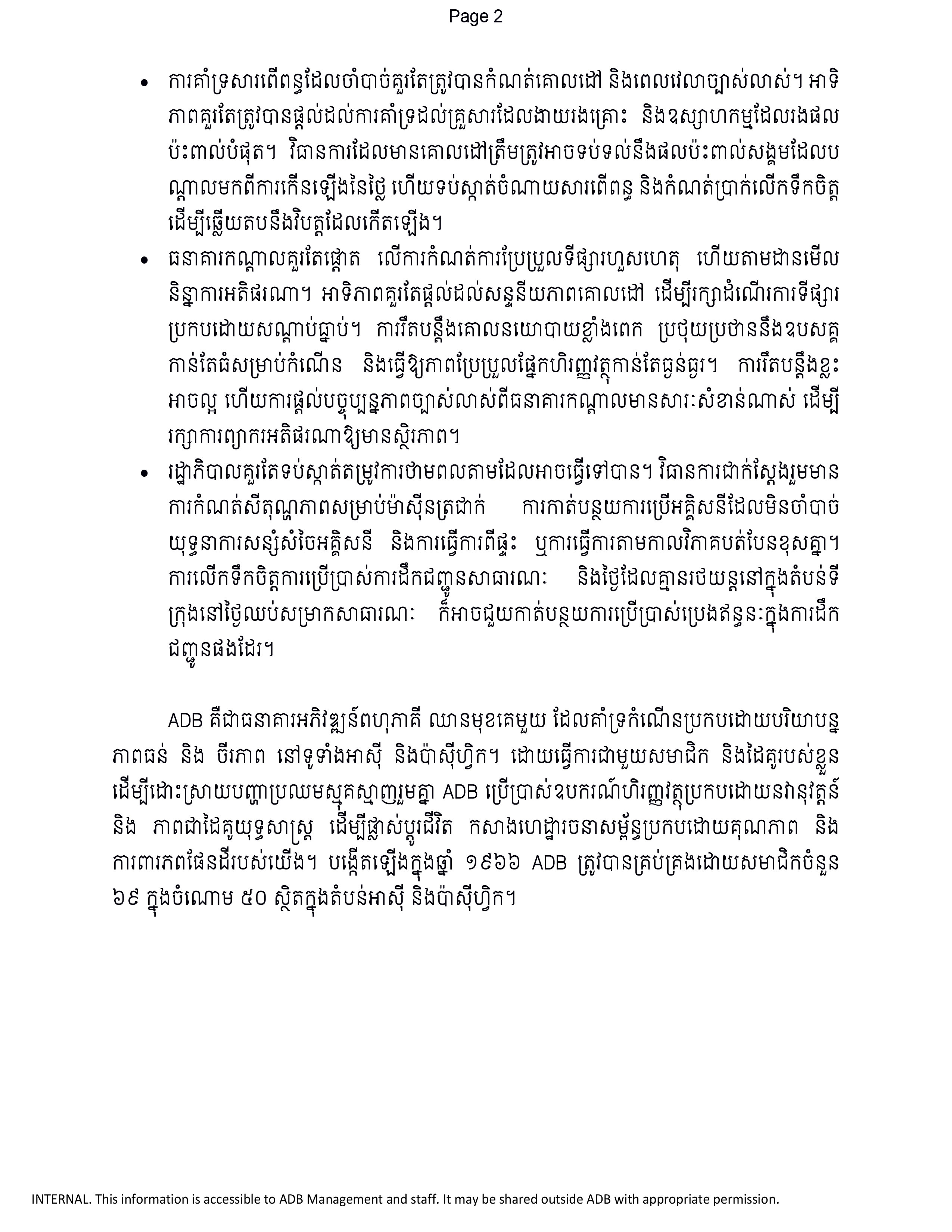 ADB is a leading multilateral development bank supporting sustainable, inclusive, and resilient growth across Asia and the Pacific. Working with its members and partners to solve complex challenges together, ADB harnesses innovative financial tools and strategic partnerships to transform lives, build quality infrastructure, and safeguard our planet. Founded in 1966, ADB is owned by 69 members—50 from the region.