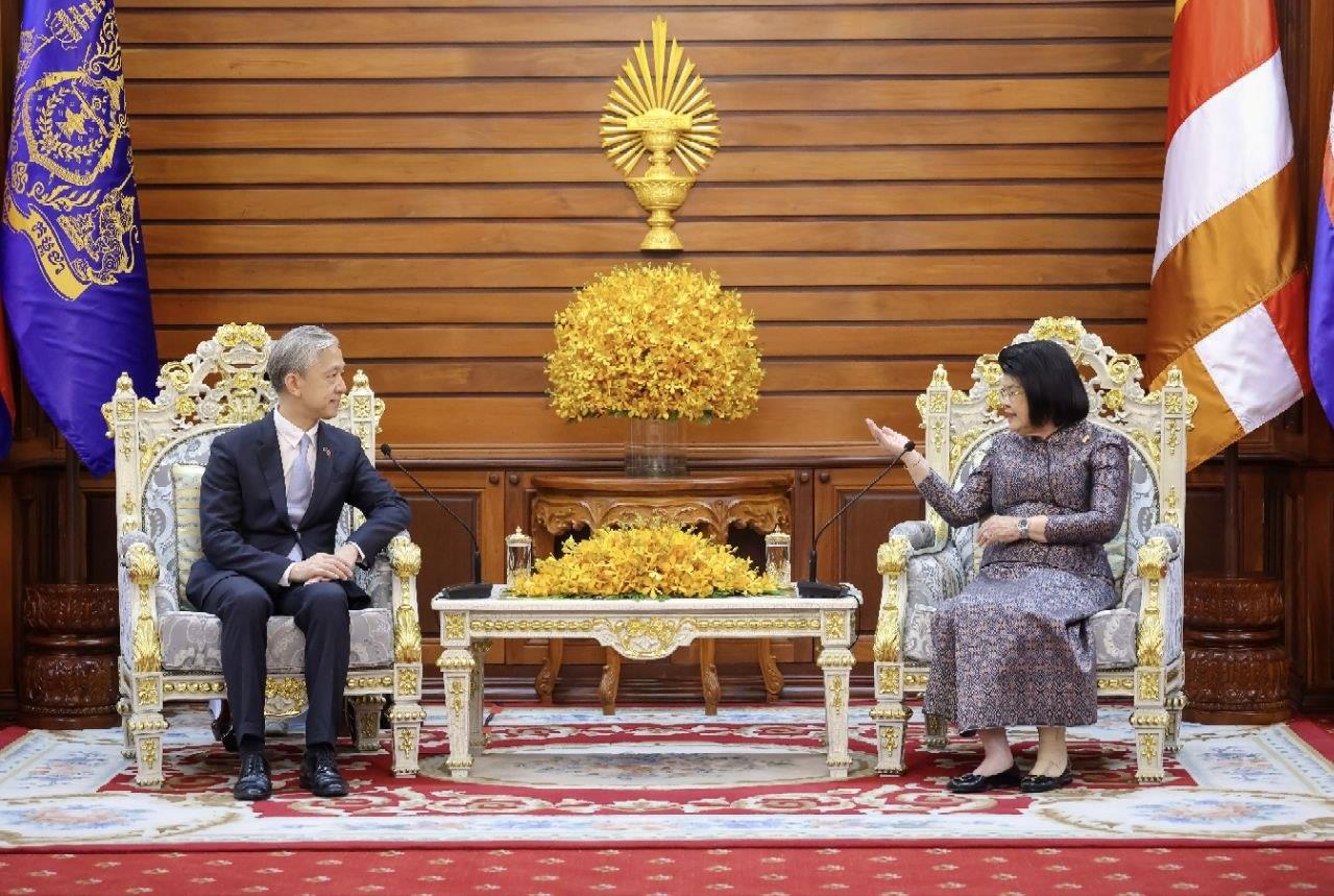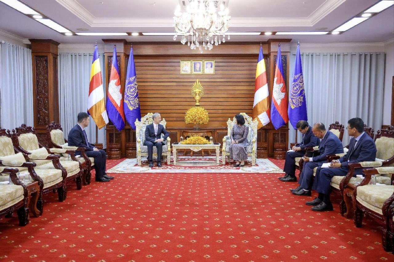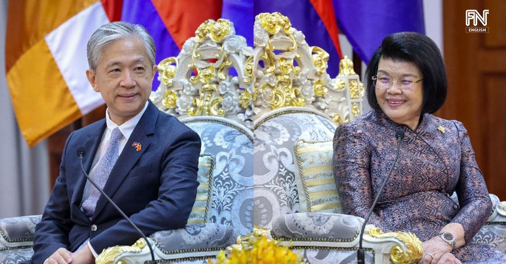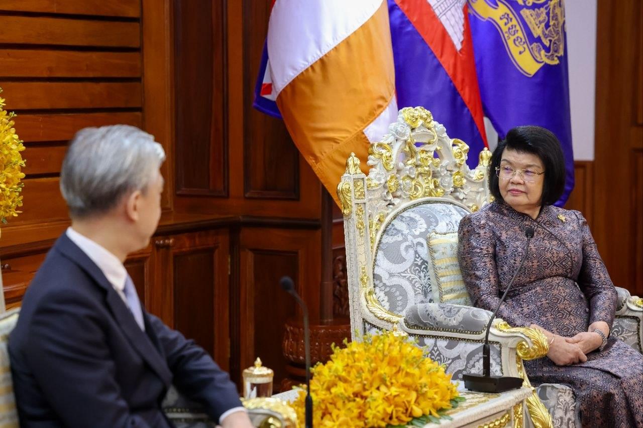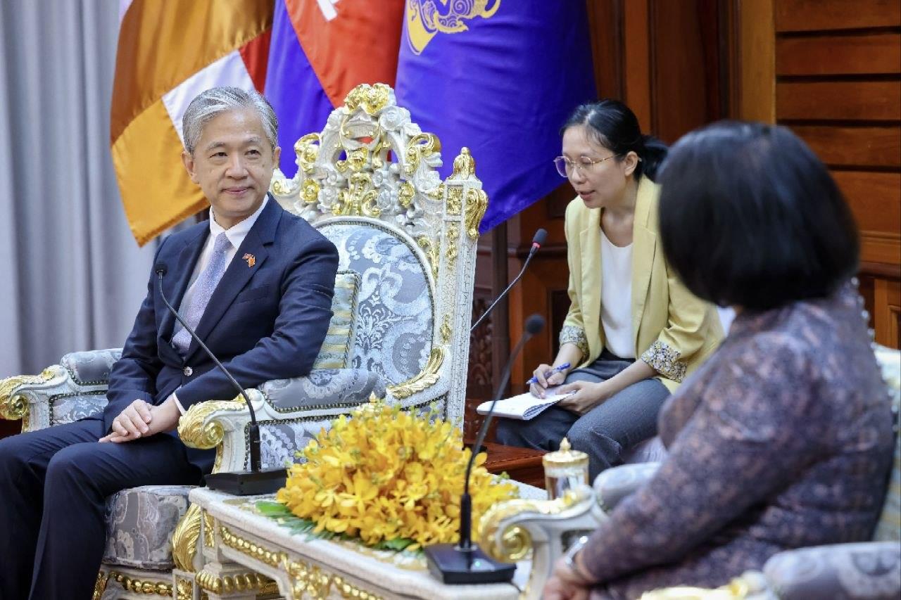 (Phnom Penh): Cambodia National Assembly President Samdech Thipadei Khuon Sudary received a courtesy call from Wang Wenbin, Ambassador of the People’s Republic of China to Cambodia, at the National Assembly Palace on Tuesday (Mar. 31).