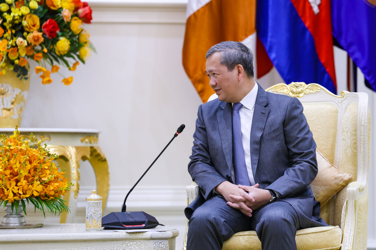 (Phnom Penh): Cambodian Prime Minister Hun Manet received a courtesy call from Zou Jiayi, President and Chair of the Board of Directors of the Asian Infrastructure Investment Bank (AIIB), at the Peace Palace in Phnom Penh on Wednesday morning (Apr. 1).