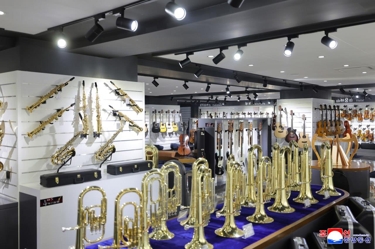Kim Jong Un visited the Hwasong Musical Instruments Shop and looked round its exhibition areas.