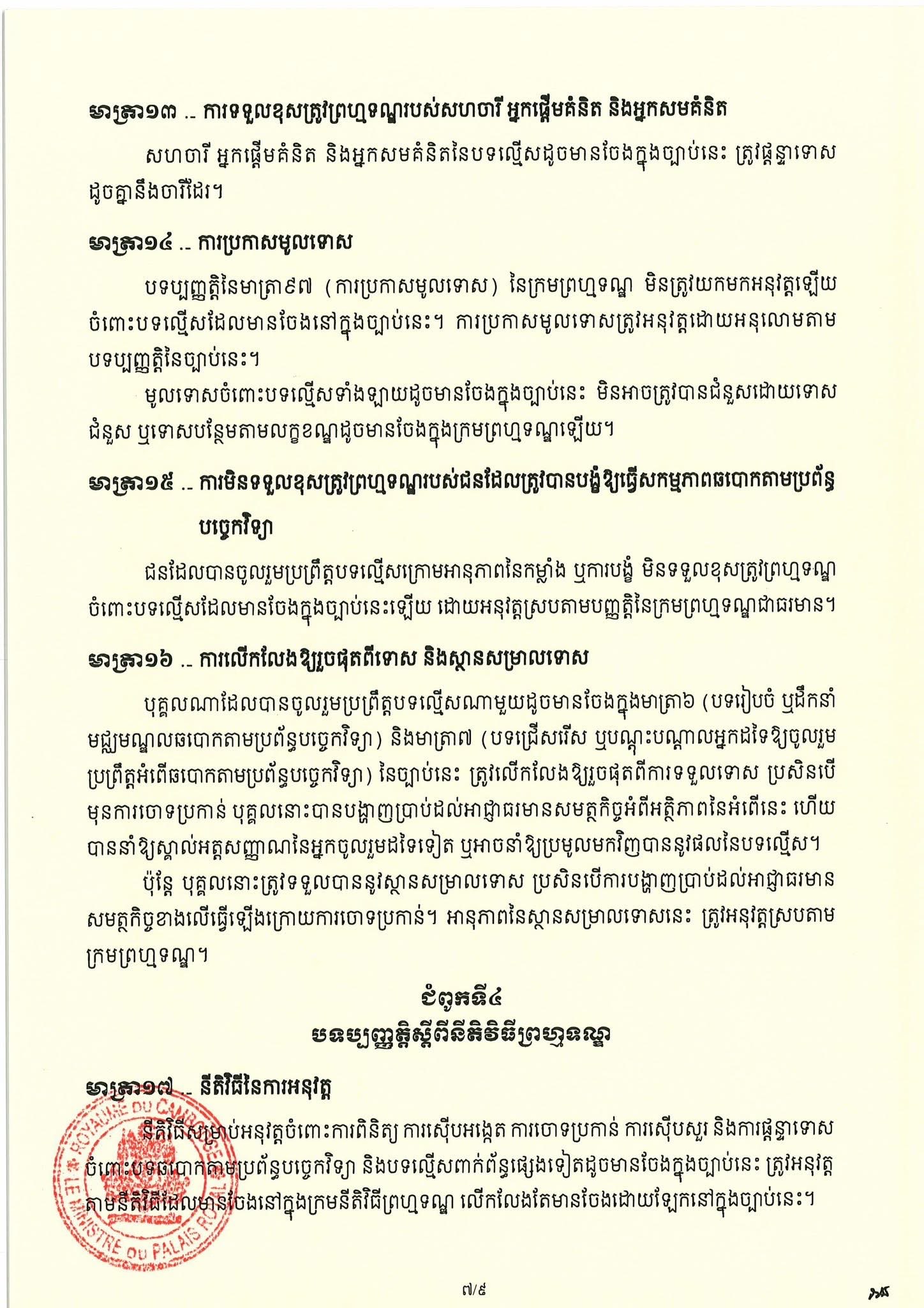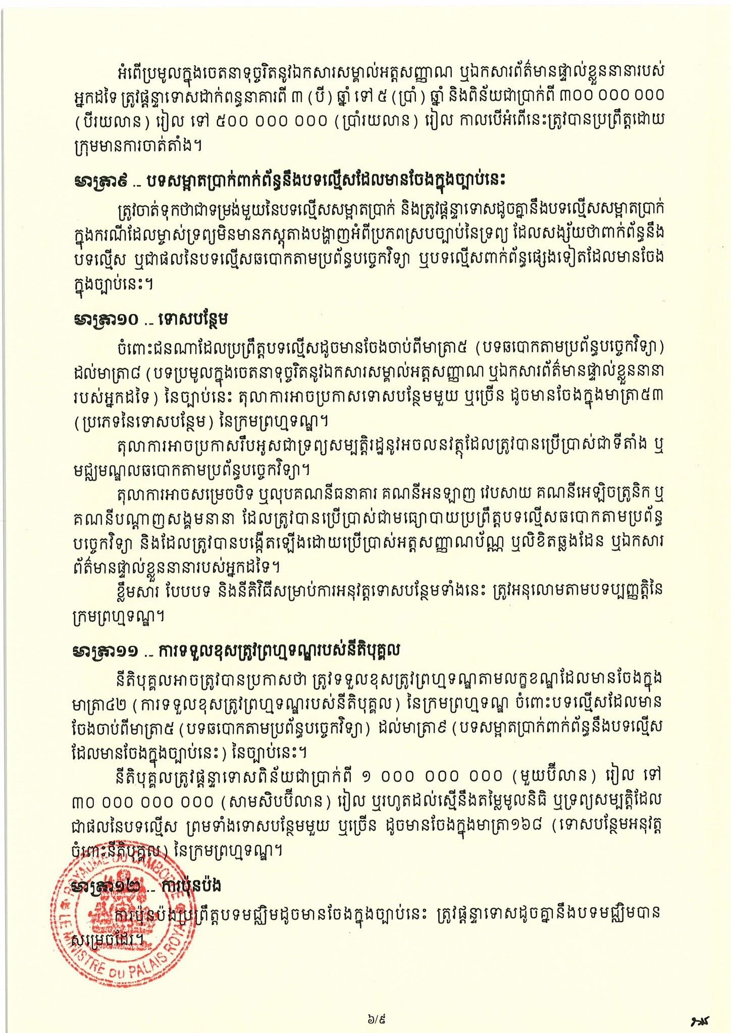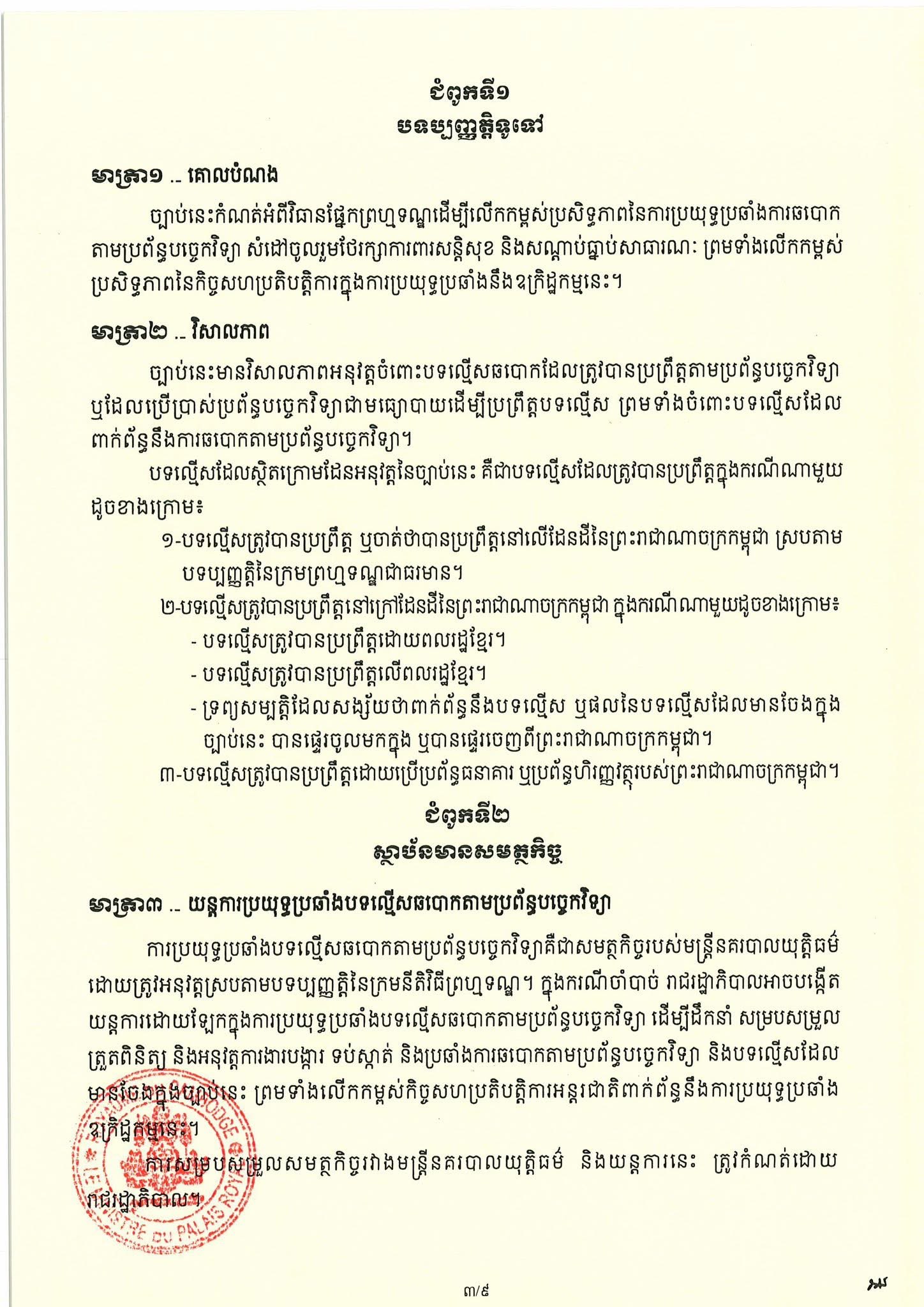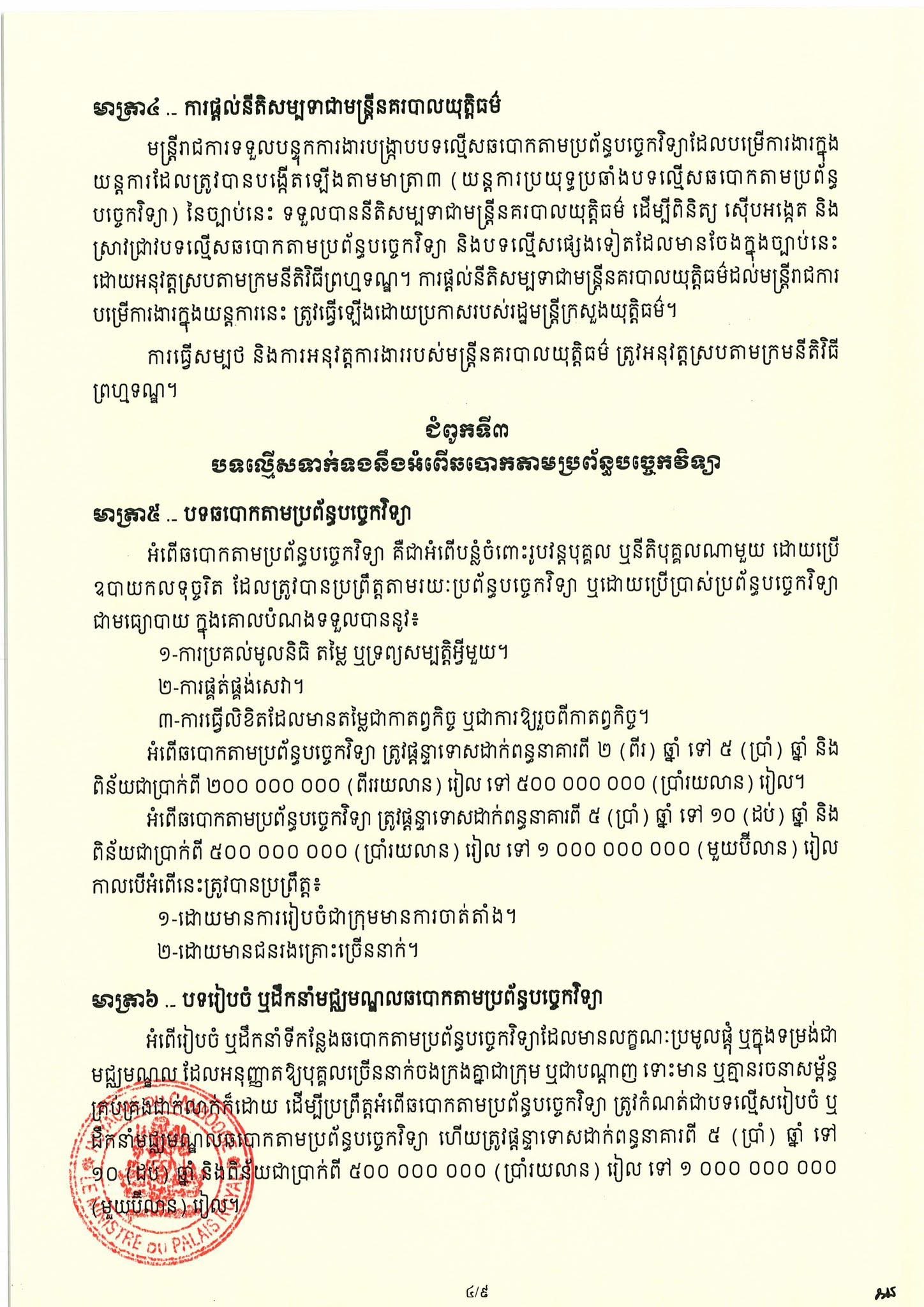 (Phnom Penh): On 6 April 2026, Cambodian Acting Head of State Samdech Techo Hun Sen issued a Royal Decree promulgating the Law on Combating Technology-based Fraud.