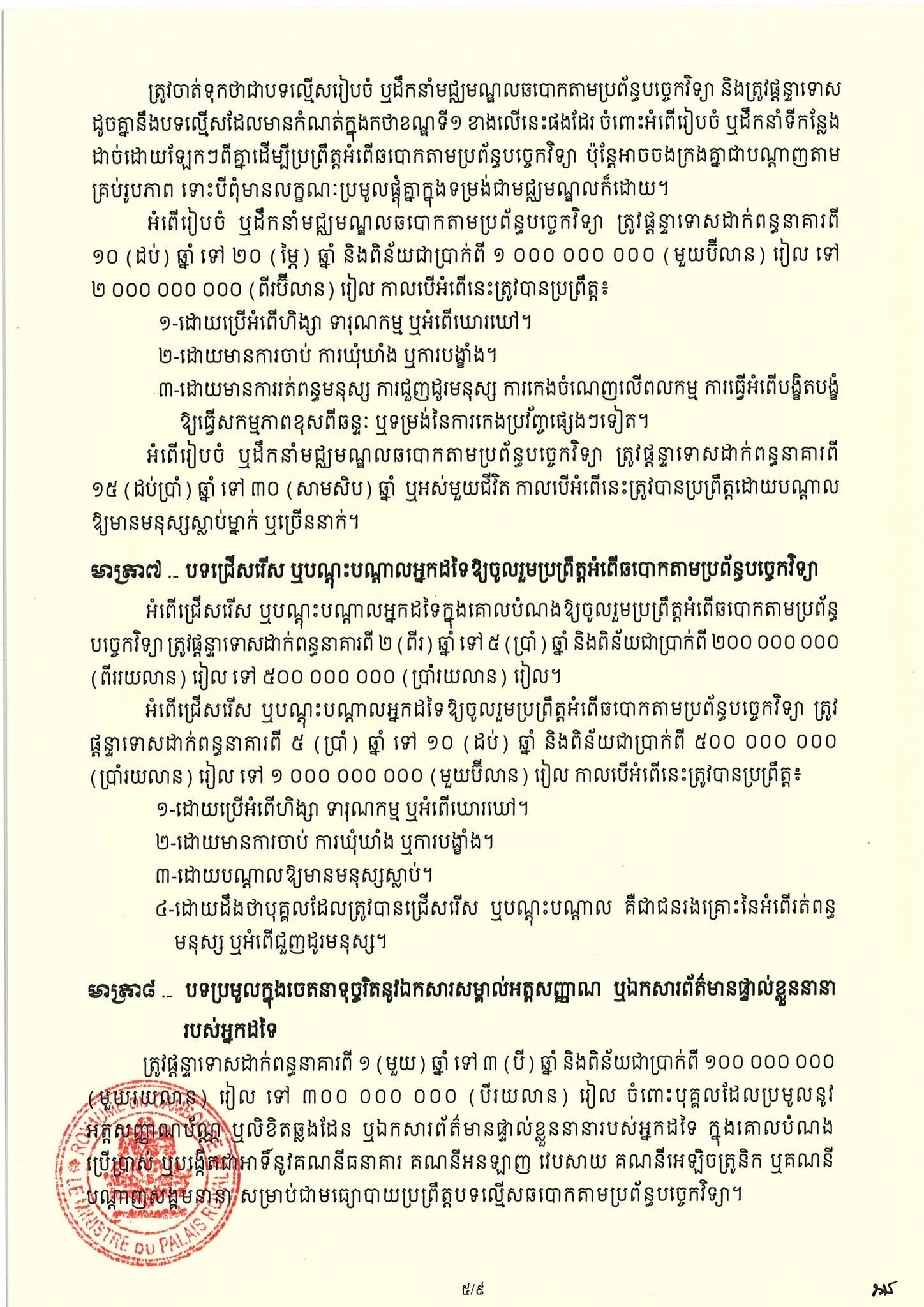 Individual scammers will face between two and five years in prison, with fines of up to 500 million riels (approximately USD 125,000).