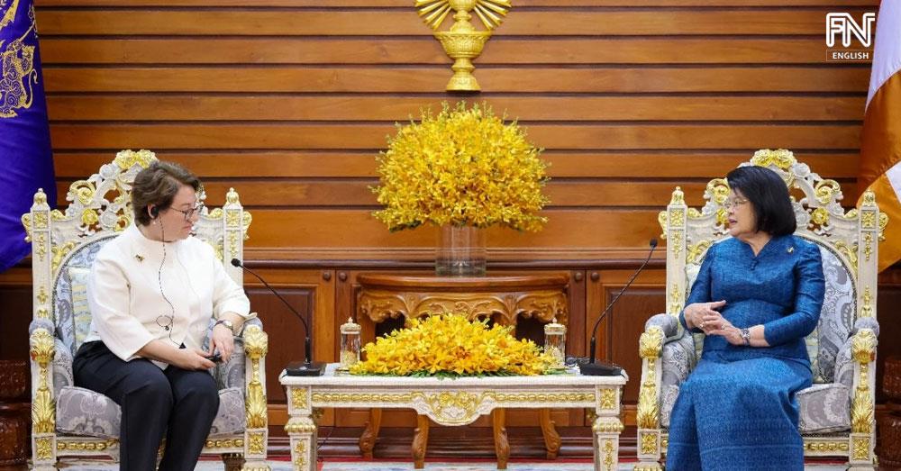 (Phnom Penh): Cambodian National Assembly President Samdech Thipadei Khuon Sudary received Ülkü Kocaefe, outgoing Ambassador of Türkiye to Cambodia, for a courtesy and farewell call at the National Assembly Palace in Phnom Penh on the occasion of the completion of her diplomatic mission in the Kingdom on Tuesday (Apr. 7).