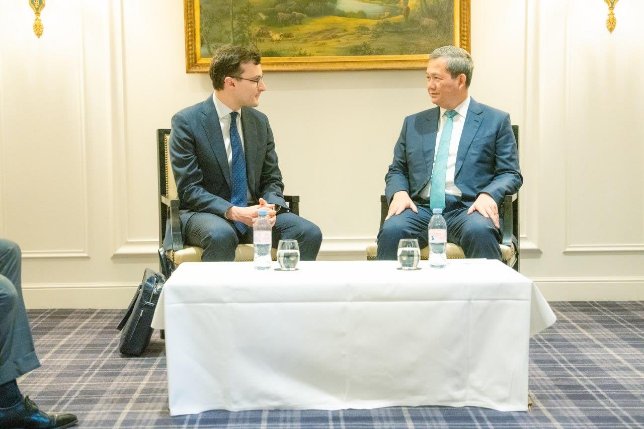 (France): Cambodian Prime Minister Hun Manet received a courtesy call and had a discussion with Rémi Maumont de Longevialle, Chief Executive Officer (CEO) of VINCI Airports, on Wednesday morning (Apr. 8) in France.