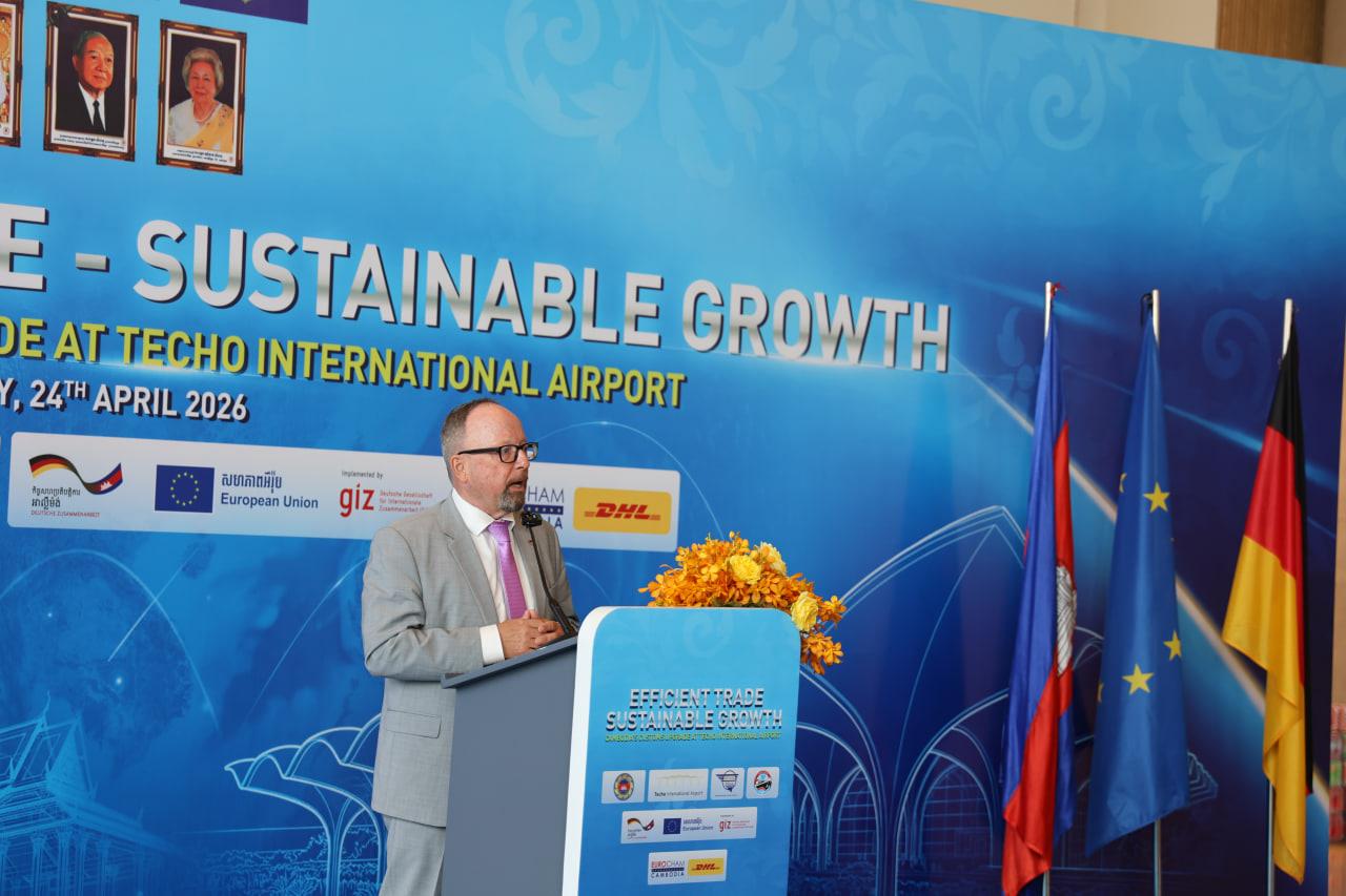 (Phnom Penh): The European Union (EU) and Germany joined Cambodian officials today to witness the progress made in reducing trade barriers through the modernization of logistics. The visit to the new Techo International Airport demonstrated how updated technology and streamlined regulations are enabling goods to reach markets faster and more efficiently.