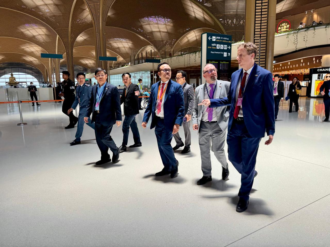 The delegation included representatives from the Ministry of Commerce, the General Department of Customs and Excise, the State Secretariat of Civil Aviation, and Cambodia Airport Investment Co. They were joined by private sector leaders from the European Chamber of Commerce in Cambodia (EuroCham), VINCI Airports, and DHL.