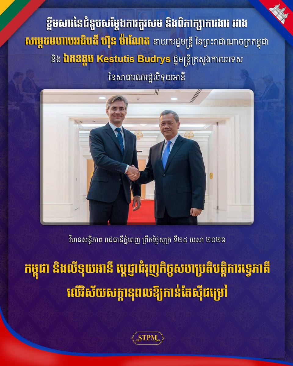 In response, Prime Minister Hun Manet extended a warm welcome to Minister Budrys and his delegation, recognizing the visit as an important impetus to bolster bilateral relations and expand collaborative efforts that would benefit both peoples.