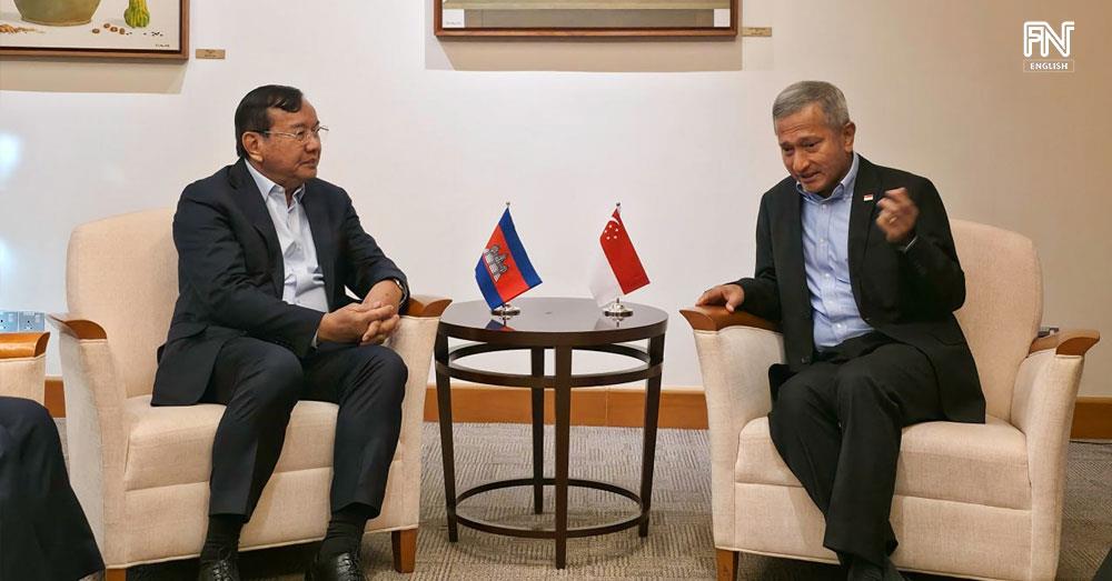 (Singapore): Cambodian Foreign Minister Prak Sokhonn had a meeting with Singaporean Foreign Minister Vivian Balakrishnan, on Monday (Apr. 27) in Singapore.