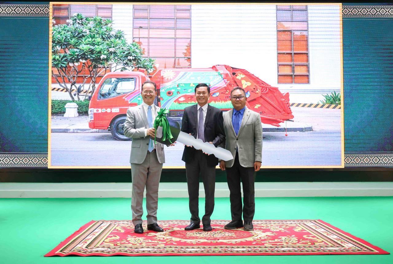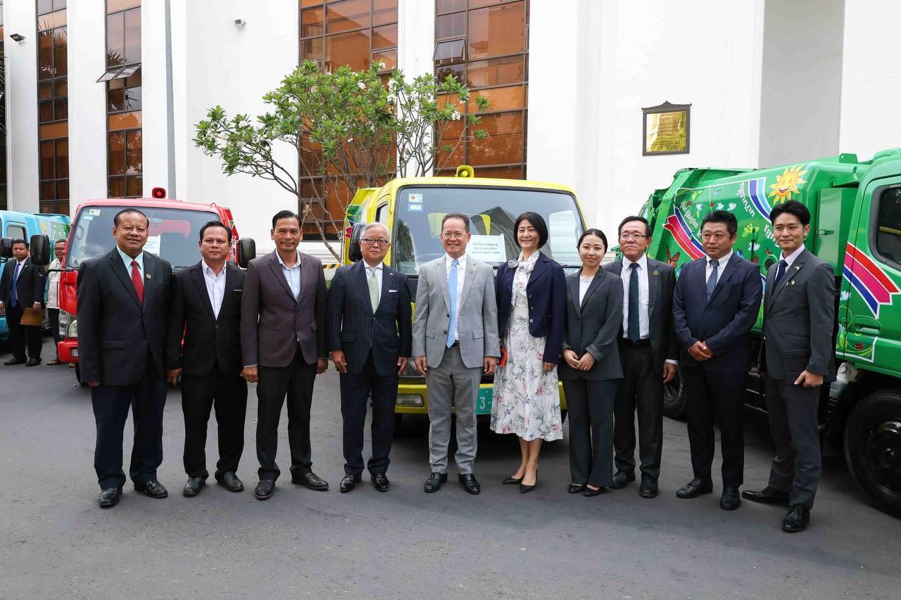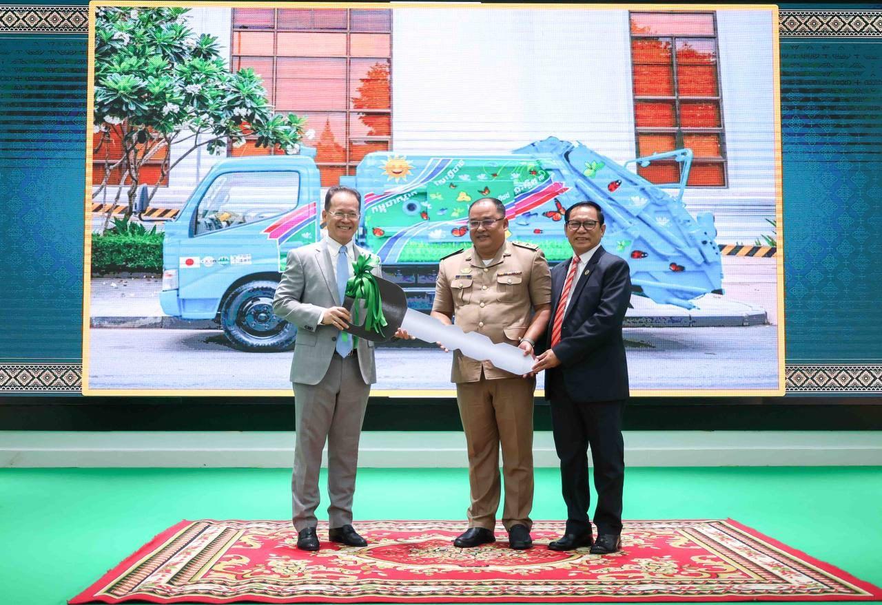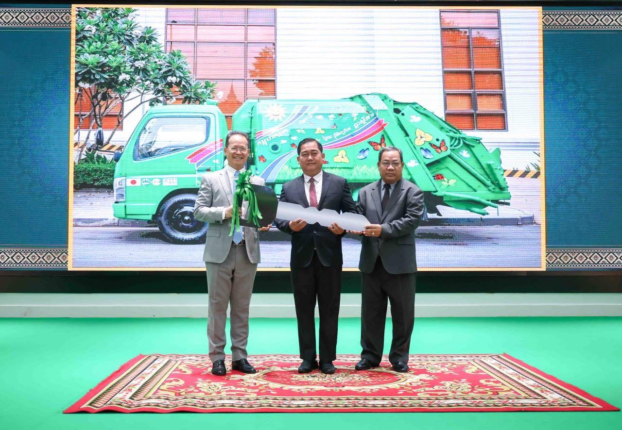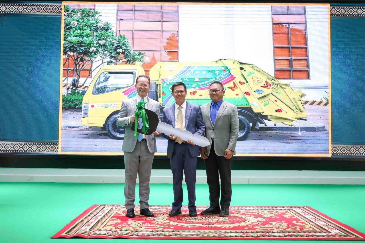 The trucks were formally handed over by Ueno Atsushi to the Ministry of Environment during an official ceremony, underscoring continued cooperation between Japan and Cambodia in environmental protection.
